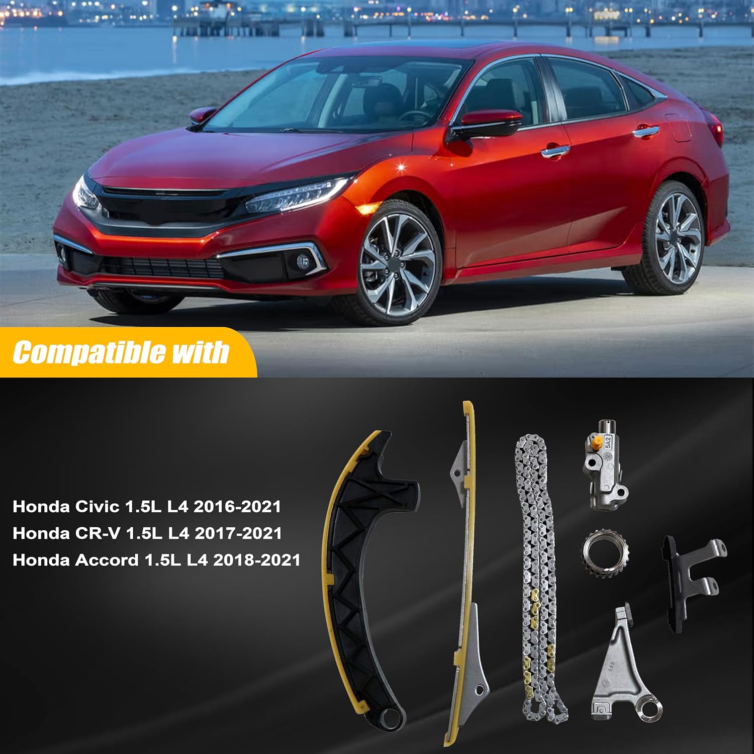 - Compatibilidade: O kit é projetado para se encaixar nos modelos Honda Accord, Civic e CR-V com motor 1.5L L4 Gas DOHC Turbo de 2016 a 2021. Esta compatibilidade assegura que você está fazendo uma escolha acertada para a manutenção do seu veículo.
