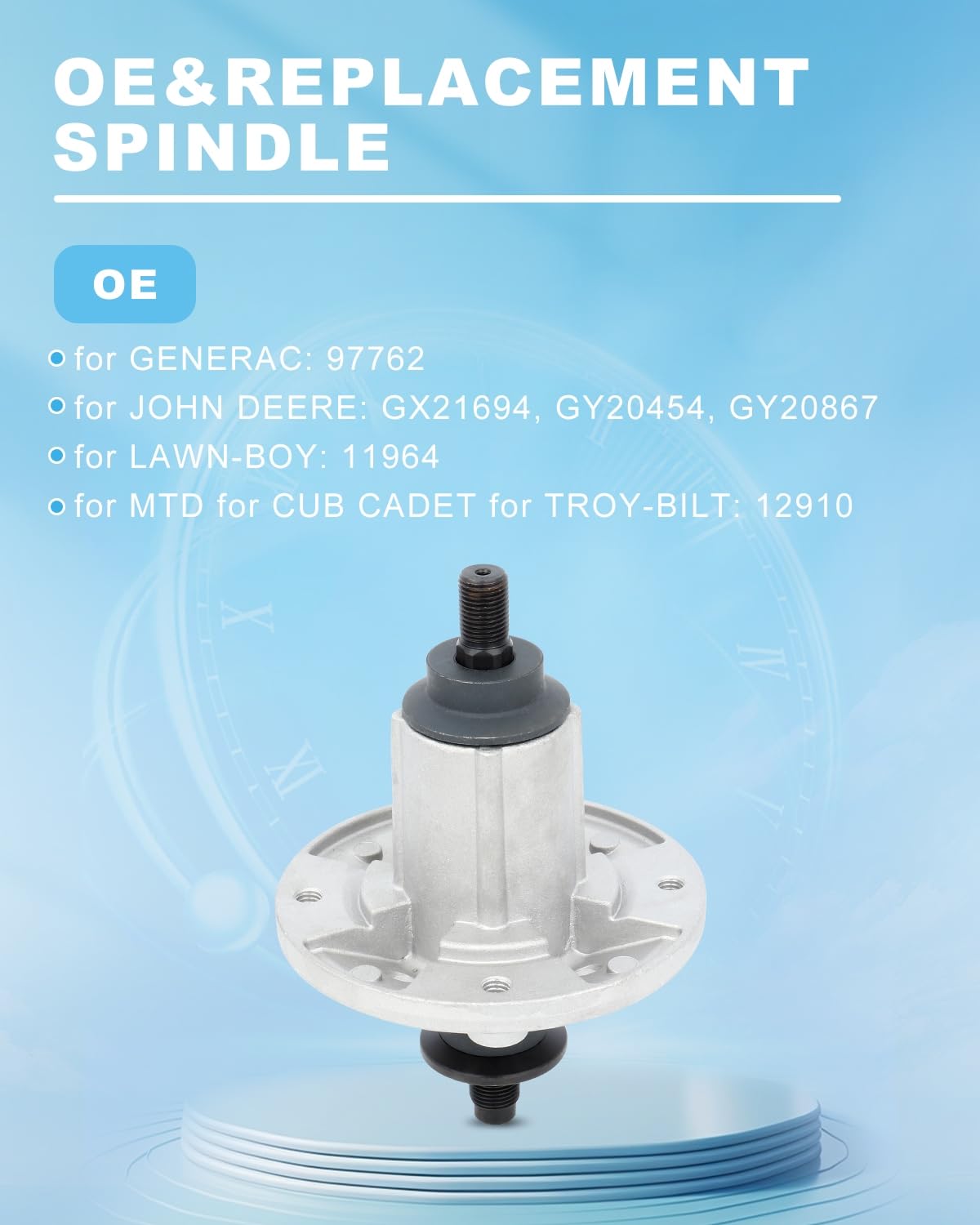 O GY20454 Spindle é uma peça essencial para a montagem de moinhos John Deere, projetada para modelos como LA135, LA115, LA125, LA145, LA105, LA130, D140, D130, D105, D110, L110, X110, e moinhos de 42″ e 48″. Este componente de alta qualidade substitui as peças OEM, incluindo Generac 97762, John Deere GX21694, GY20454, GY20867, GY20962, GY21098, GY21099, M149625, Lawn-Boy 11964, MTD, Cub Cadet, Troy-Bilt 12910, B1JD122, B1JD45, Oregon 82-359, 82-360, e Stens 285-851, 285-883.