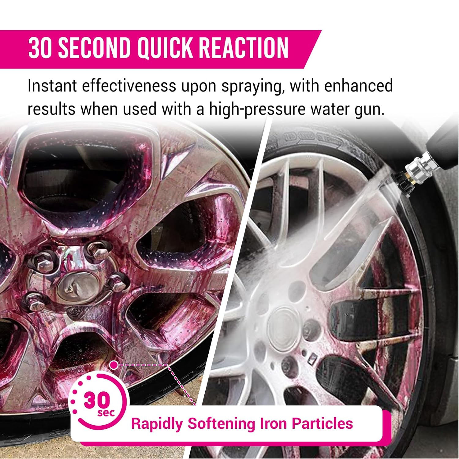 This is the first step before a proper soap wash, and it works wonders at removing all the built-up pollution, brake dust, and iron particles that you don’t even realize are stuck to your paint. I sprayed it on both the topside and underside, and within minutes, I could see the product doing its job—breaking down and dissolving all that hidden grime.