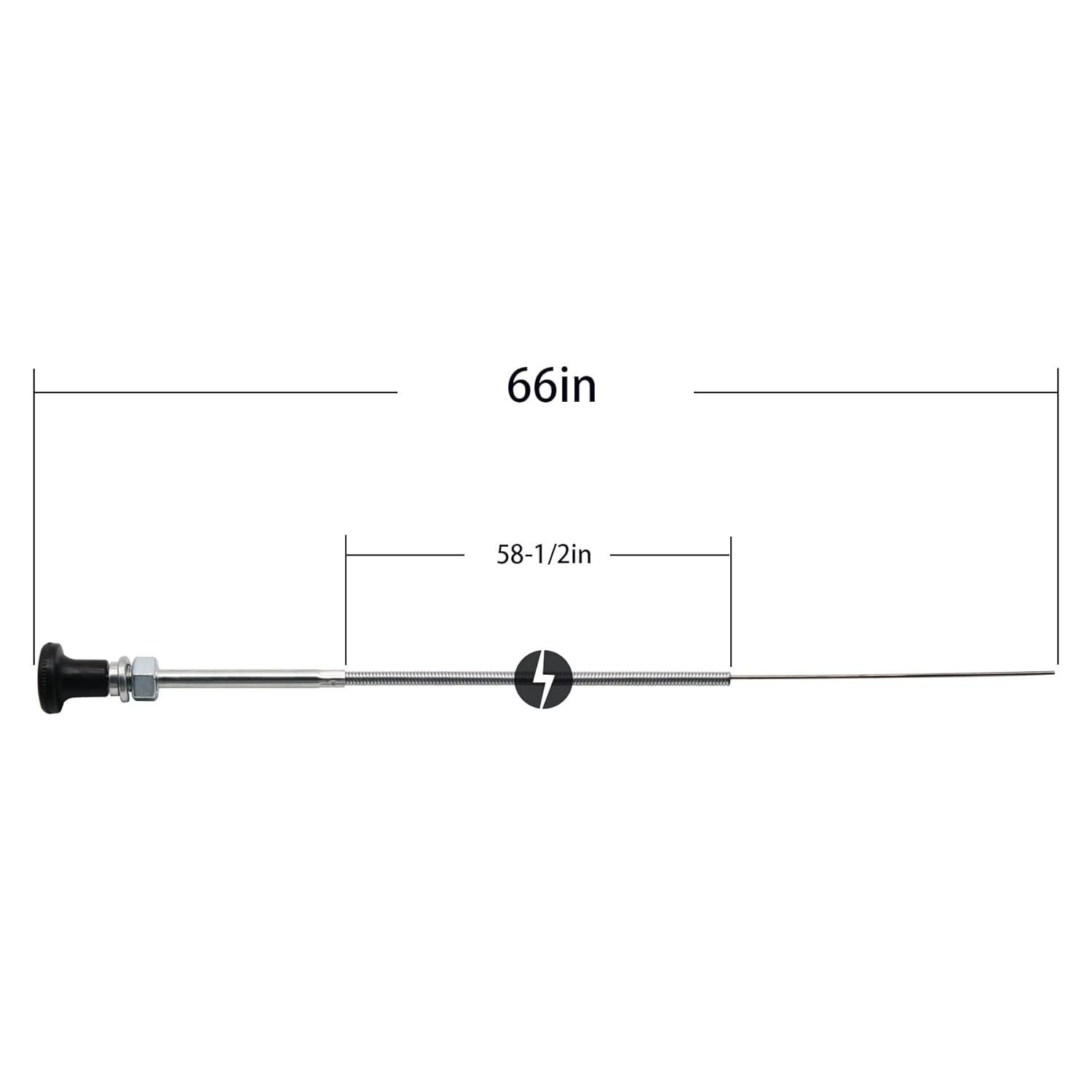 – Dimensões: Comprimento do conduto: 60”, Comprimento do fio interno: 63”, Comprimento da viagem: 2-3/4 polegadas.