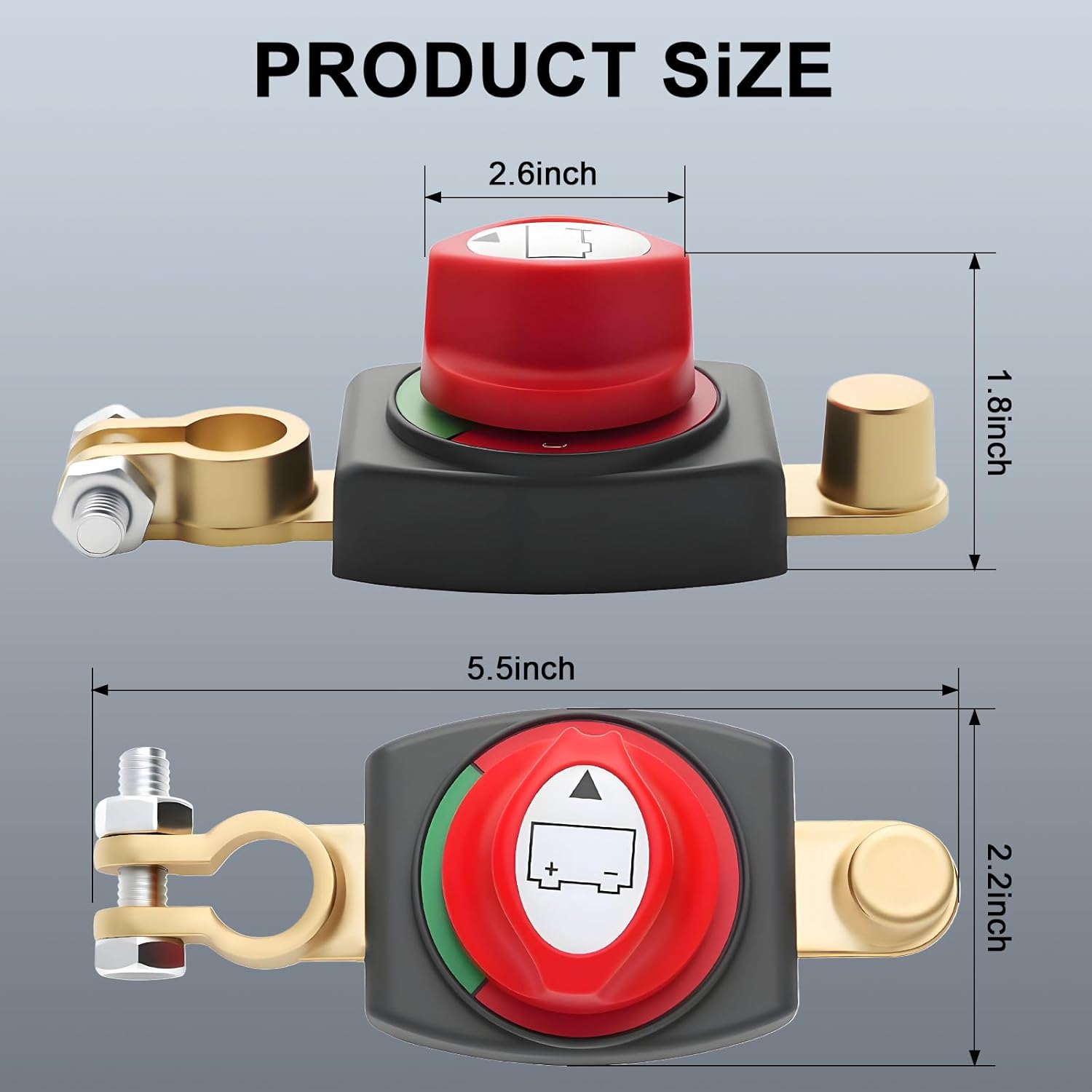 Thisxis the first cutoff Ive liked – most are bulk and cantilever off the edge of battery which creates all sorts of issues. Also they FEEL janky! This one is small enough to fit on top of my battery and the turnimg knob feel solid- as does the thump of the connection when it is turned. The knob motion does NOT pull the way lever types do. No key to lose or remote. This is great for wroking on vehicles, golf carts, machinery as well as disabling them or to prevent draining of batteries for long term storage. I ordered for my Cushman Titan to make working on it easier as well as to prevent battery drain. The only possible shortcoming is that the battery connector is the shorter type but its not really an issue like it was on the lever cut offcas the actuon of using it produces no fulcrum pressures. It is tight, fits well and fully connects & disconnects as expected. Definitely the most durable feeling one ive used out of 4 different types. I definately would recommend THIS cutoff & can honestly say ive never liked any of the others enough to say that – in fact Ive steered people away from every other one I’ve used before. My favorite before this was probably the red plastic key type- this is better same action , better built , on the battery rather than remote + no key to lose or tether! This may not fit on top of all batteries – still sturdy when sticking off the side – as/long as you have space . Check my pics on the grid board for measurements!