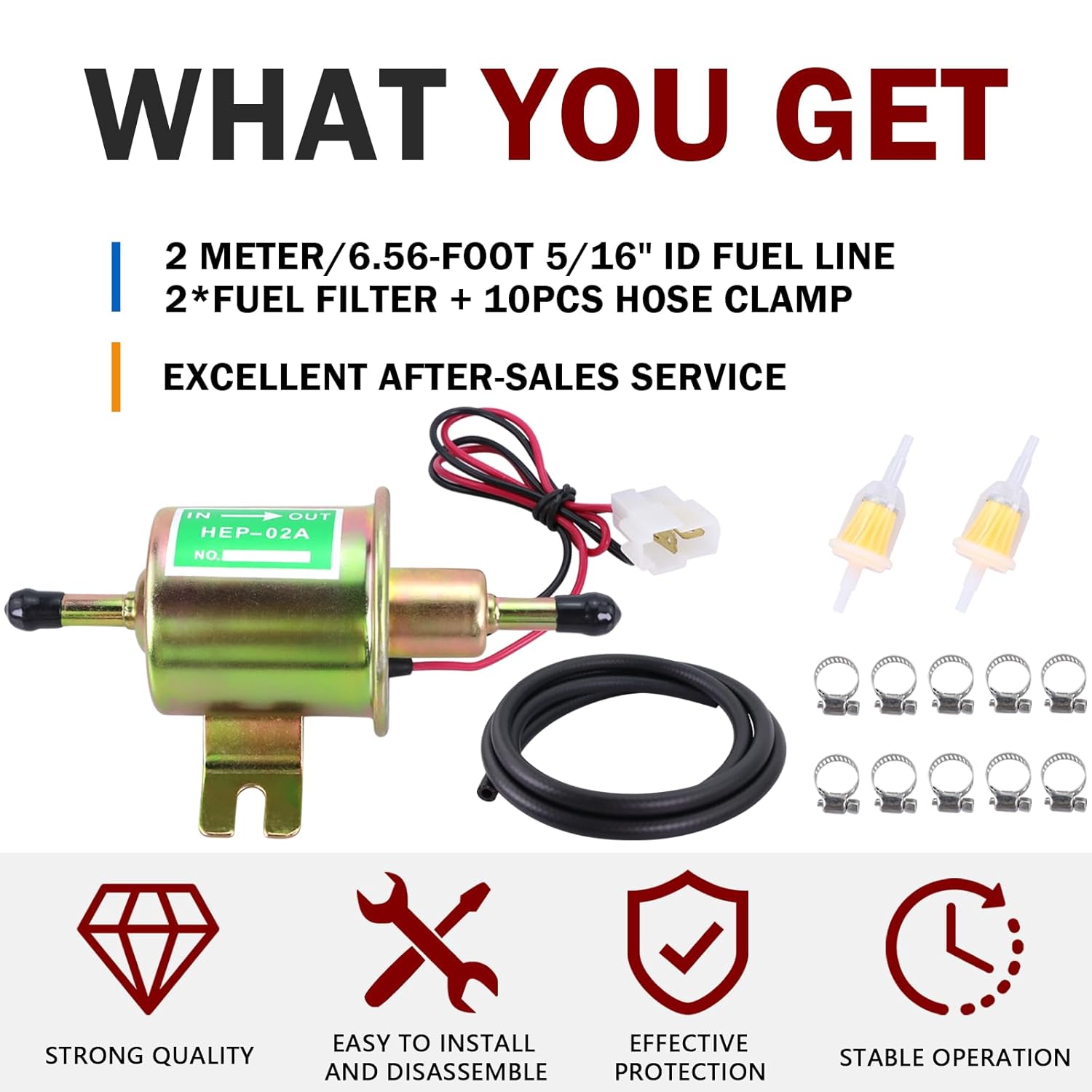 Pacote Inclui: O kit vem completo com 2 metros (6,56 pés) de mangueira de combustível com diâmetro interno de 5/16″, 2 filtros de combustível e 10 braçadeiras para mangueira, proporcionando tudo o que você precisa para uma instalação rápida e fácil.