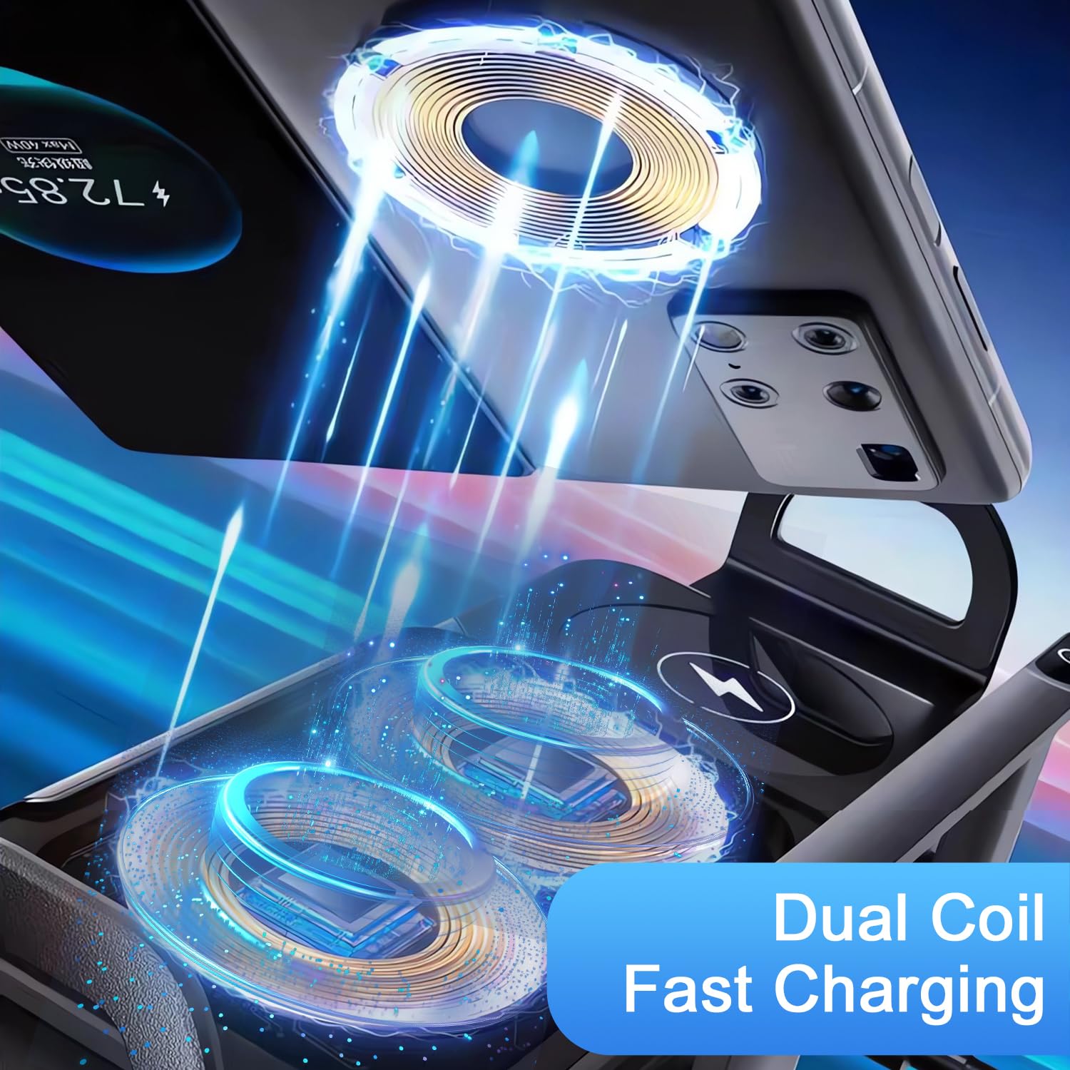 Suporte Inteligente para Celular e Tablet com Carregador Sem Fio Rápido – 2 em 1, Rotação Automática, Compatível com Celulares Dobráveis (Preto)