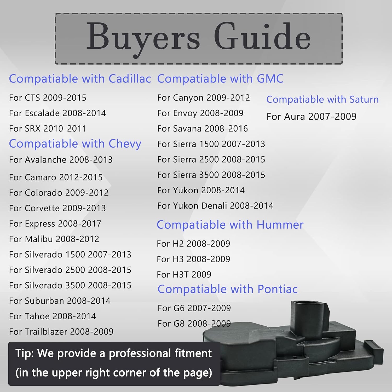 Perfect fit and it cleared the dash code on a 2007 Silverado. The clips are sharp and bit difficult to angle my hands with a Channel locks in order to hold in place while simultaneously pressing down to snap around and into and the housing.