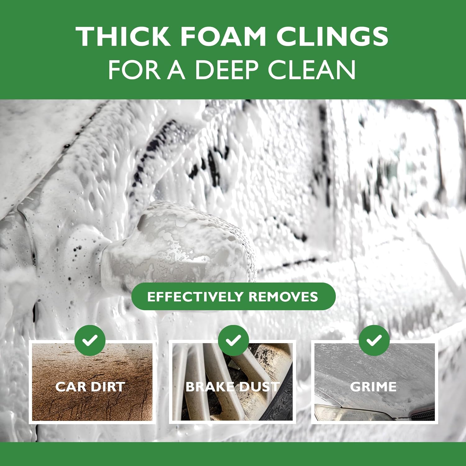 Nice foamy and the suds last plenty long. Cleaning agents were mild enough for bare hands but strong enough to remove dirt and leave a brilliant shine. Rinses off easy and well. Car comes out clean and very satisfying results. Comes as a concentrate, so you can use more or less depending on your needs, and doesn’t take up a whole lotta space too. Recommend giving this product a try.