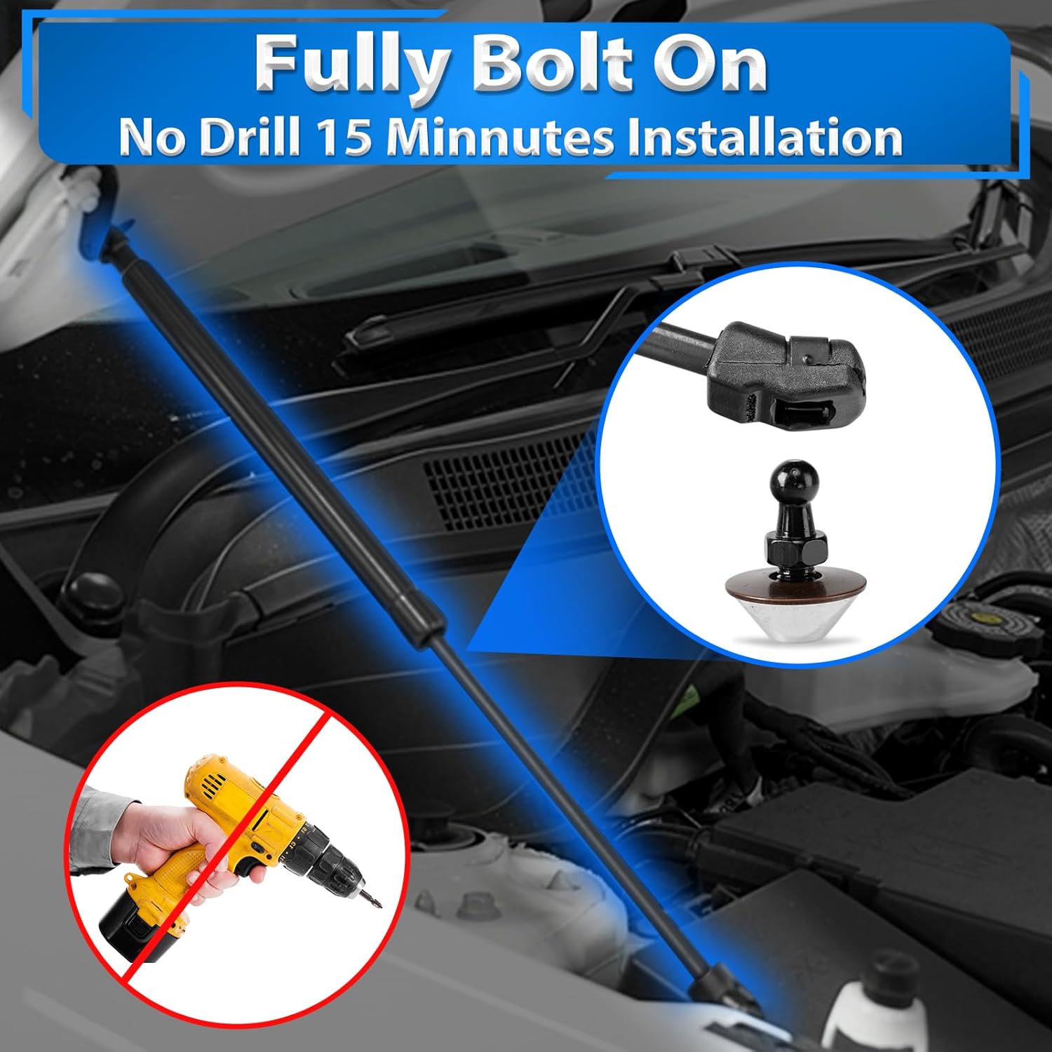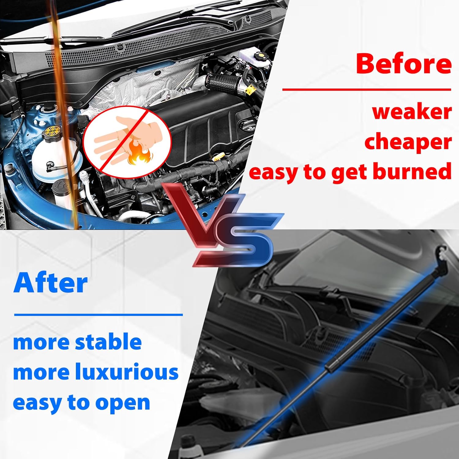- [ATUALIZE SEU TRAX]: Melhore seu Trax 2024+ substituindo as barras de suporte do capô de fábrica por suportes e cilindros. Isso não apenas levanta o capô, mas também proporciona uma visão clara da área do motor do Trax. Diga adeus à abertura manual de baixo risco do capô.