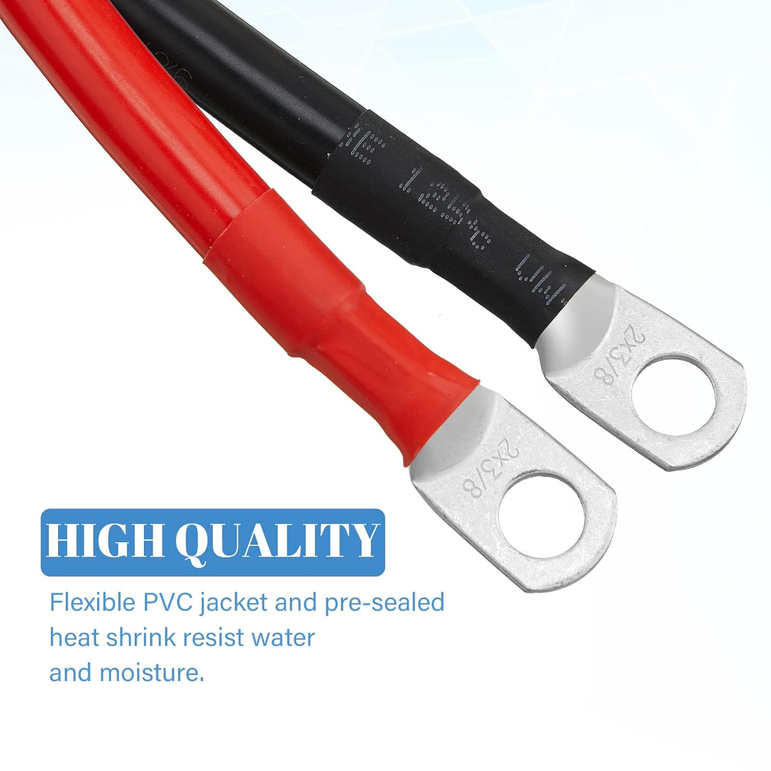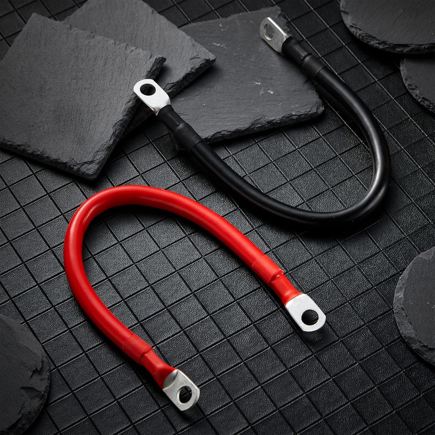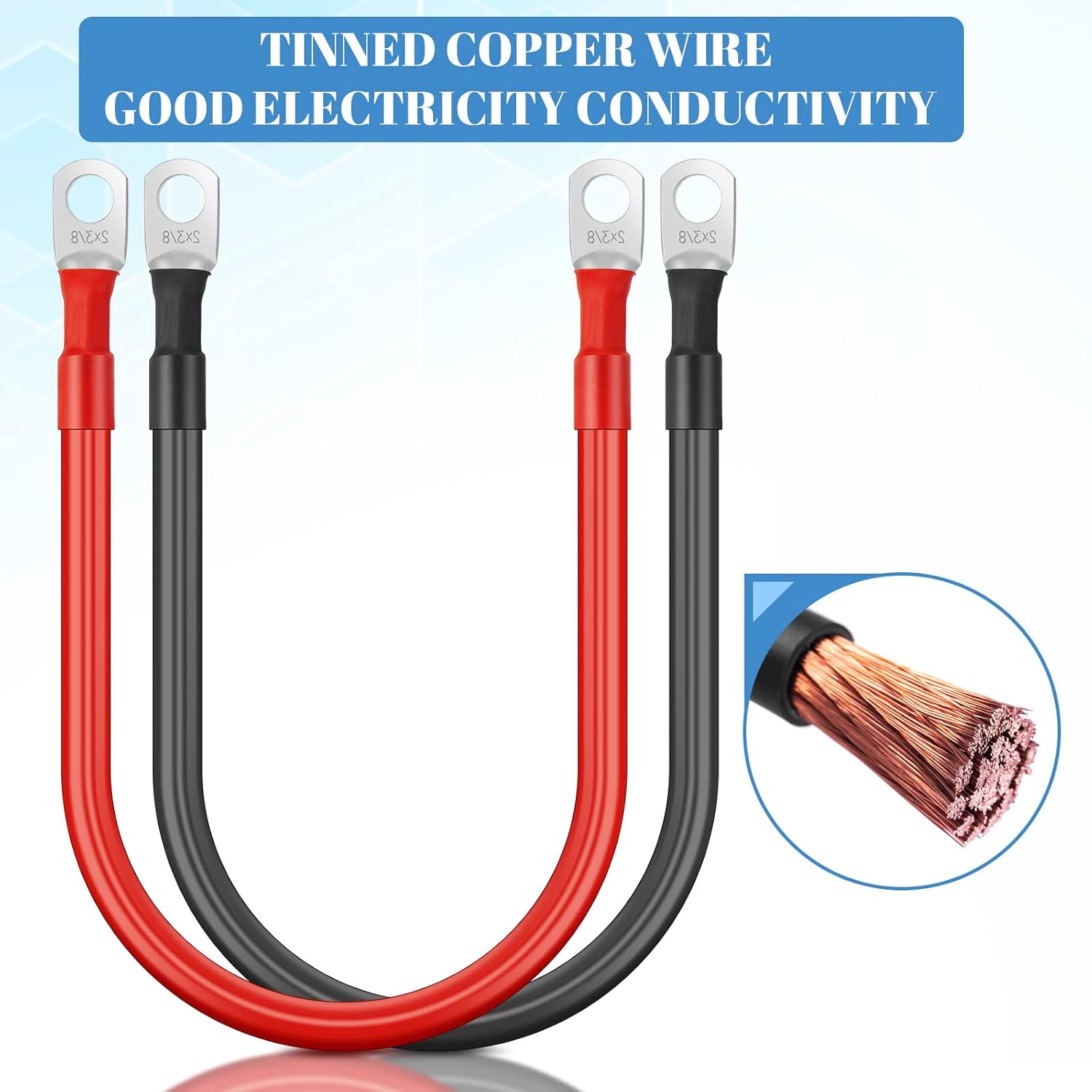 Com um comprimento de aproximadamente 1 pé, cada cabo possui terminais de 3/8 polegadas em ambas as extremidades, facilitando a instalação e o uso. Esses cabos são versáteis e podem ser aplicados em diversas situações, como em automóveis, caminhões, sistemas solares, RVs, motocicletas, cortadores de grama e embarcações. A capacidade de suportar mais de 200 A de corrente torna esses cabos uma escolha confiável para suas necessidades elétricas.