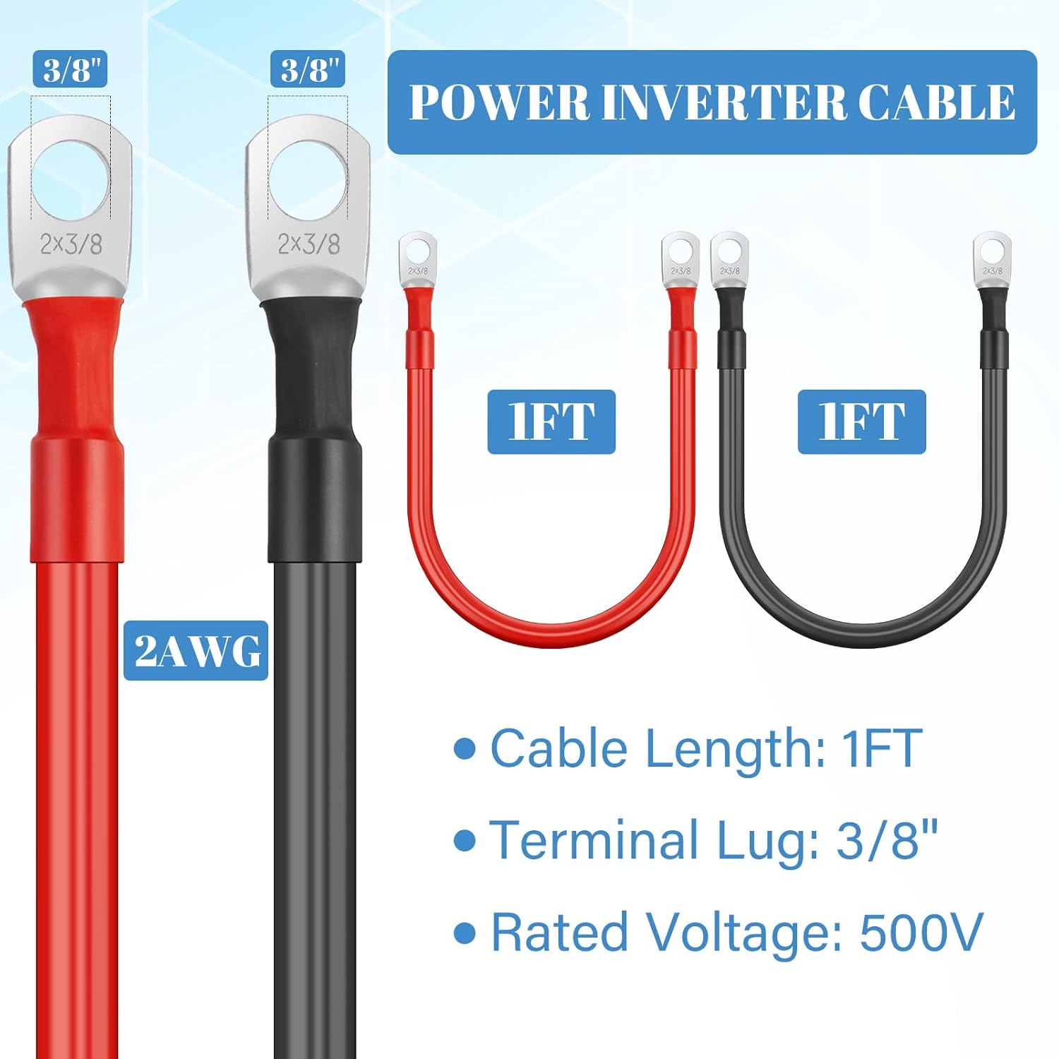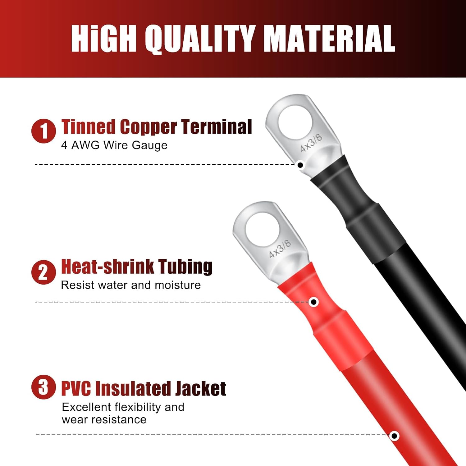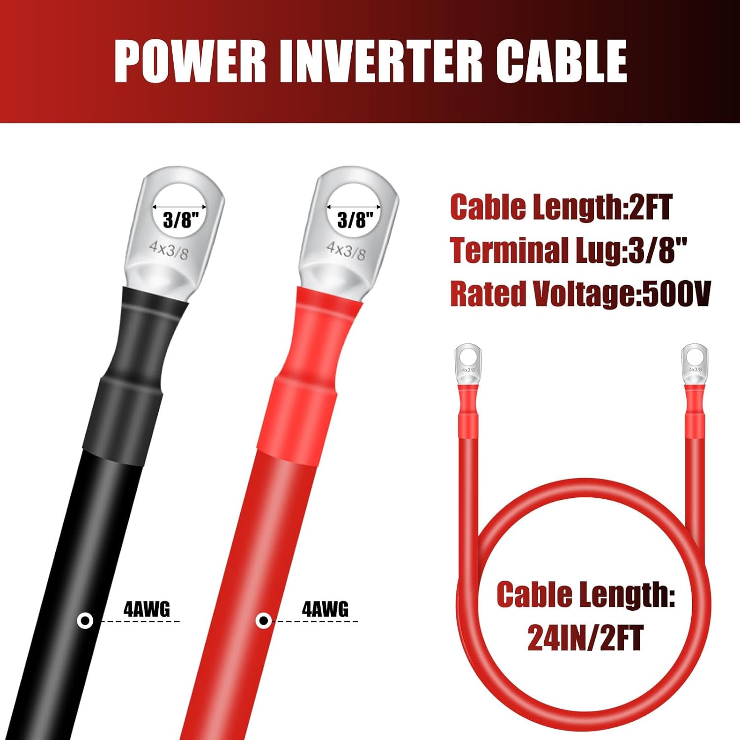 Com um comprimento de aproximadamente 1 pé, cada cabo possui terminais de 3/8 polegadas em ambas as extremidades, facilitando a instalação e o uso. Esses cabos são versáteis e podem ser aplicados em diversas situações, como em automóveis, caminhões, sistemas solares, RVs, motocicletas, cortadores de grama e embarcações. A capacidade de suportar mais de 200 A de corrente torna esses cabos uma escolha confiável para suas necessidades elétricas.