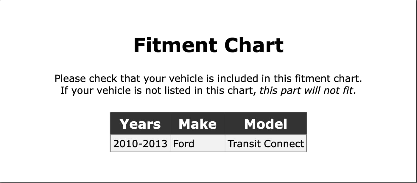 – Modelo Compatível: Ford Transit Connect 2010, 2011, 2012, 2013.