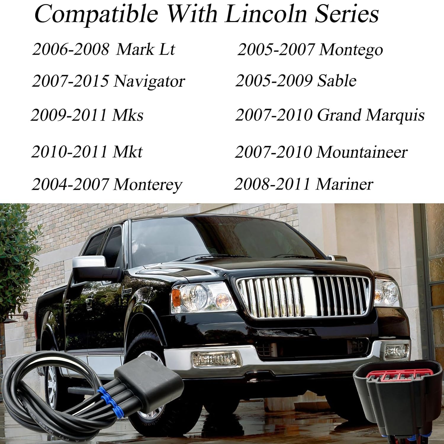 - 【Fiação do Motor do Ventilador Pigtail Compatível com a Série Lincoln】: 2006-2008 Mark Lt, 2007-2015 Navigator, 2009-2011 Mks, 2010-2011 Mkt. Compatível com a série Mercury: 2004-2007 Monterey, 2005-2007 Montego, 2005-2009 Sable, 2007-2010 Grand Marquis, 2007-2010 Mountaineer, 2008-2011 Mariner.