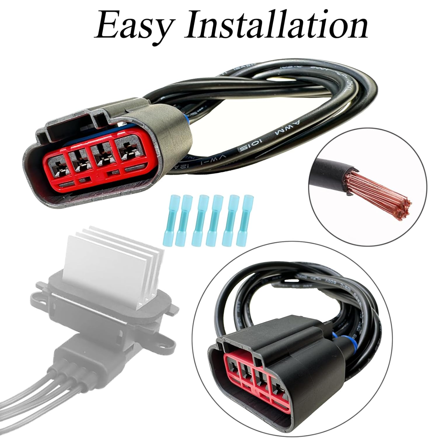 - 【Materiais de Alta Qualidade】: O conector de fiação do resistor do motor do ventilador HVAC é fabricado com soquetes de núcleo de cobre importados, fios de cobre espessos e plástico ABS superior. Apresenta alta sensibilidade, resistência ao calor, resistência ao envelhecimento, resistência a impactos e inserção precisa, prevenindo contatos ruins e protegendo o ventilador de danos causados por corrente excessiva.