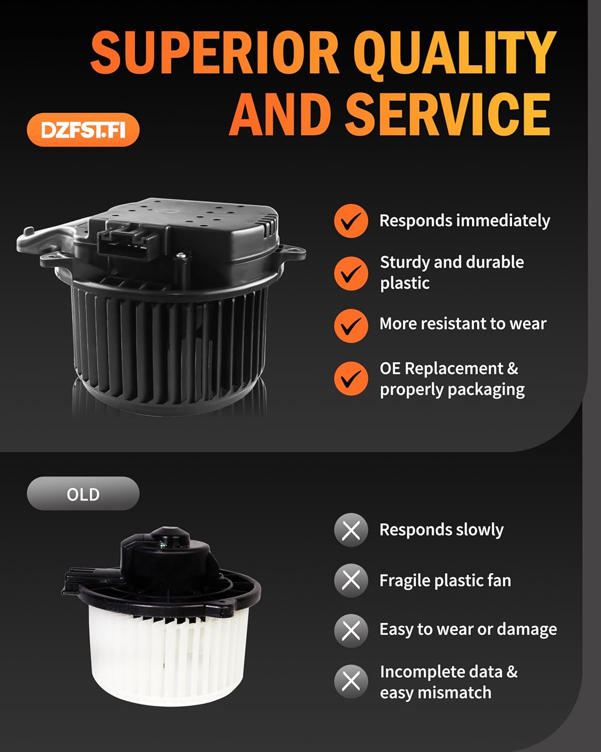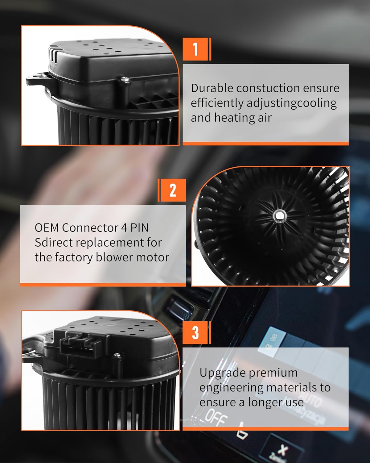 Processo de Atualização: Fabricado com materiais de alta qualidade, o motor de ventilador HVAC foi otimizado com base nos padrões originais OE, resultando em um produto mais estável e durável. Com uma potência de vento superior e operação silenciosa, ele proporciona um ambiente confortável dentro da cabine, mesmo nas condições mais adversas.