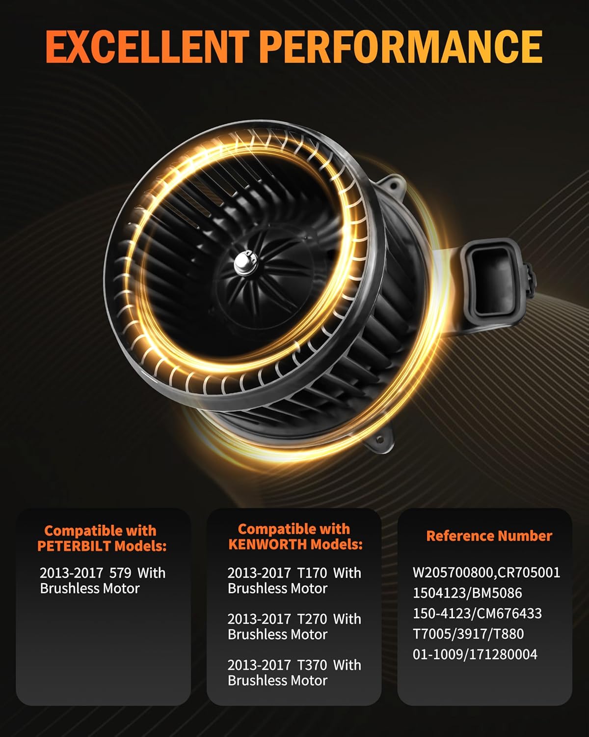 Descrição do Produto: Motor de Ventilador de Aquecimento HVAC com Motor Sem Escovas Compatível com Peterbilt 579
