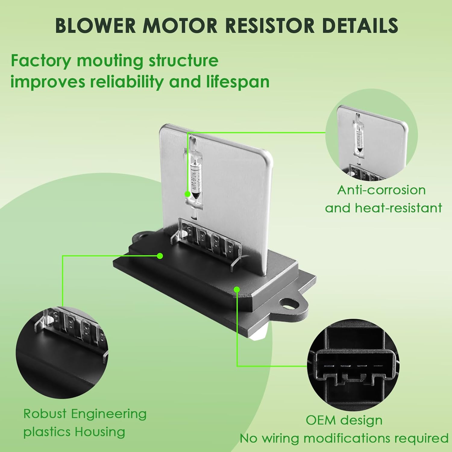 - [Função]: Este resistor de substituição do motor do ventilador é projetado para se encaixar perfeitamente, atendendo ou superando as especificações do equipamento original. Sua instalação no motor do ventilador do ar-condicionado é simples e rápida, permitindo que você retome o conforto em seu veículo sem demora.