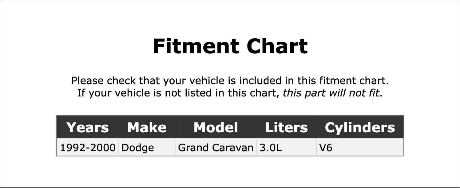 – Compatibilidade: Projetada especificamente para Dodge Grand Caravan 3.0L V6 (1992-2000)