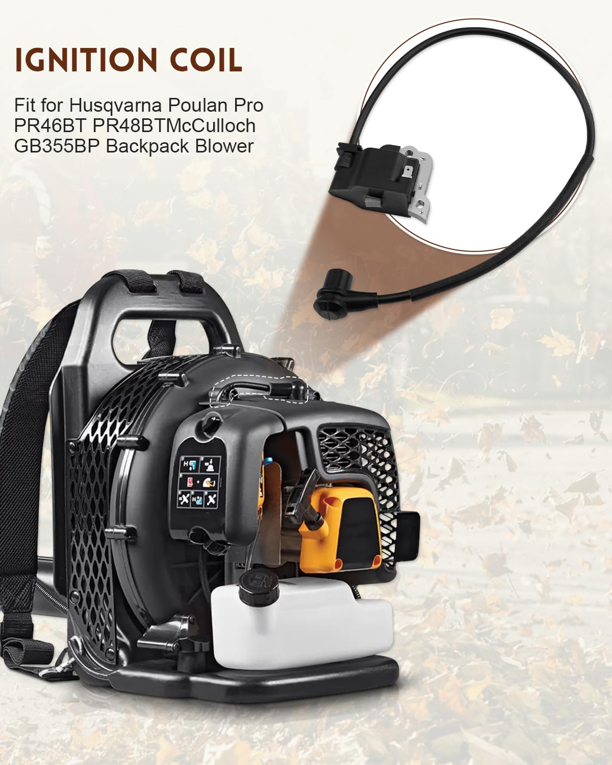 - Fit Perfectly: A bobina de ignição é compatível com sopradores de mochila de 46cc, como Husqvarna Poulan Pro PR46BT, PR48BT, Craftsman CMXGAAH46BT e McCulloch GB355BP, assegurando um ajuste preciso e funcional.