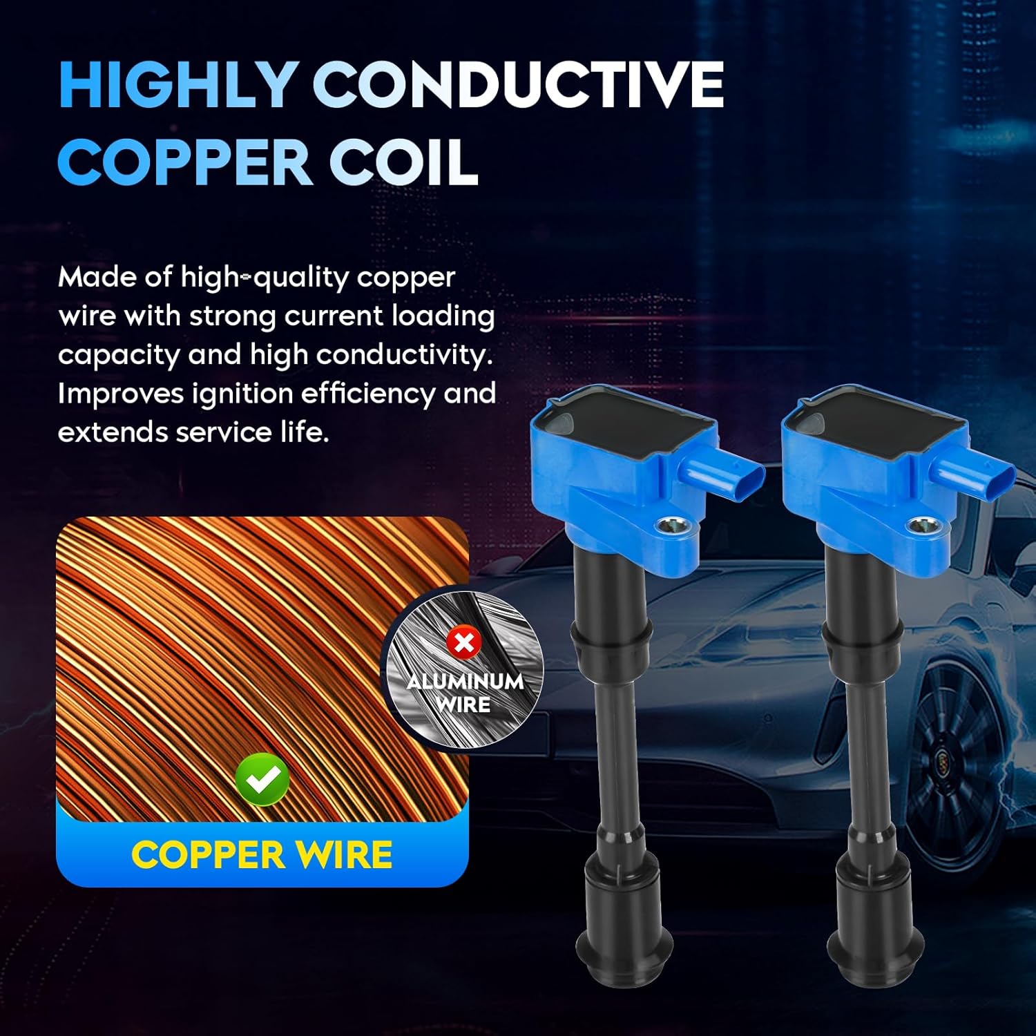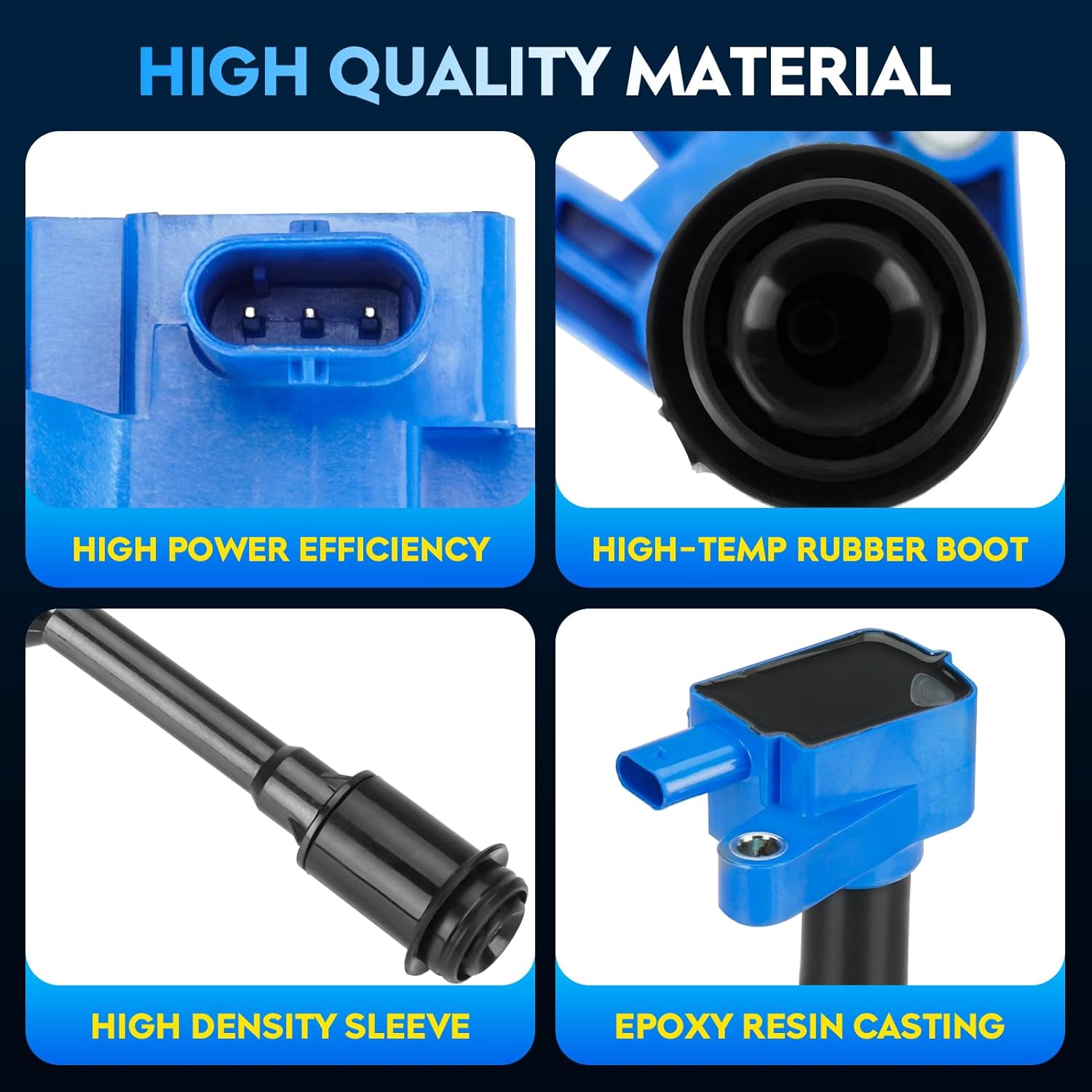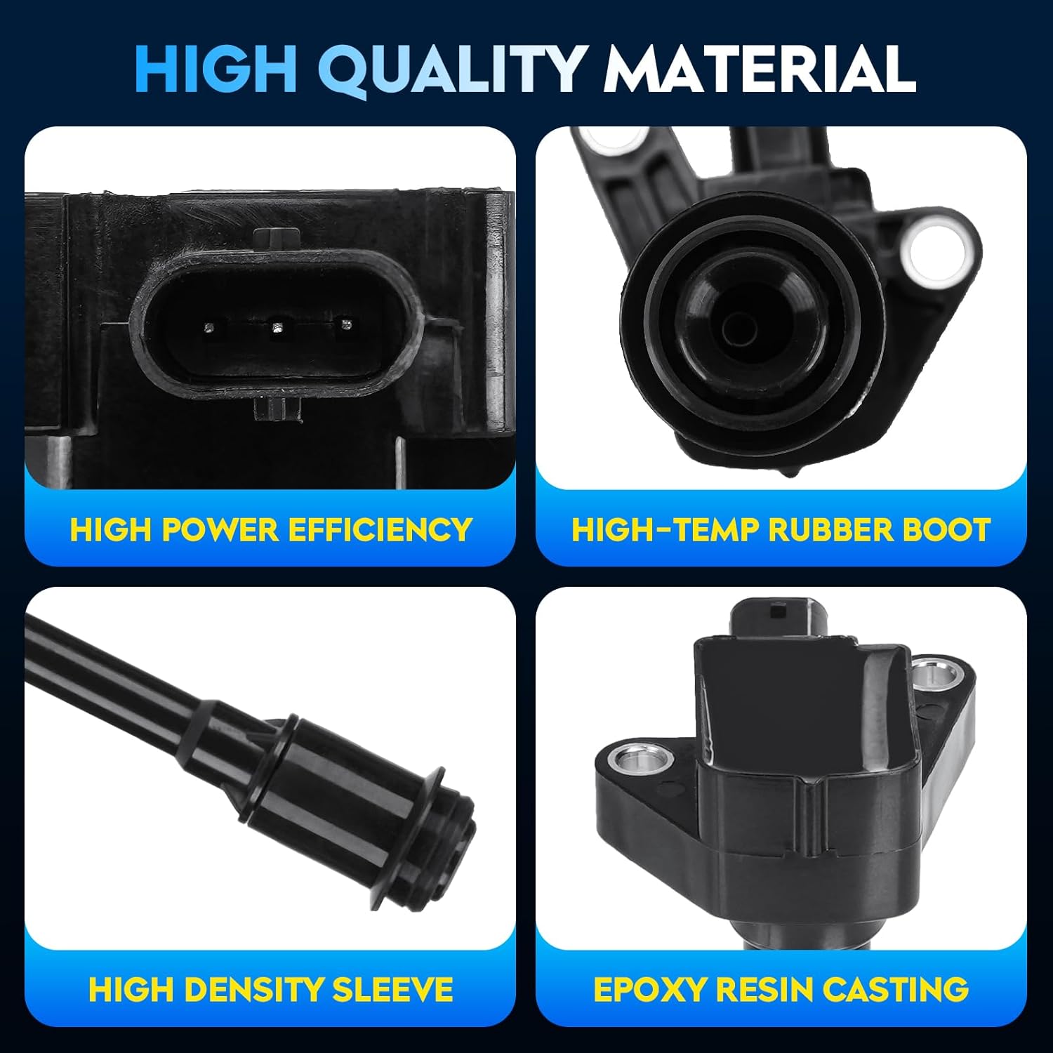 • 🚗 Aumento de Performance: O exterior das nossas bobinas de ignição é feito de resina epóxi e plástico PPT, prevenindo o derretimento devido ao superaquecimento do motor. O interior é composto por bobinas de cobre altamente condutivas, proporcionando uma ignição mais rápida.