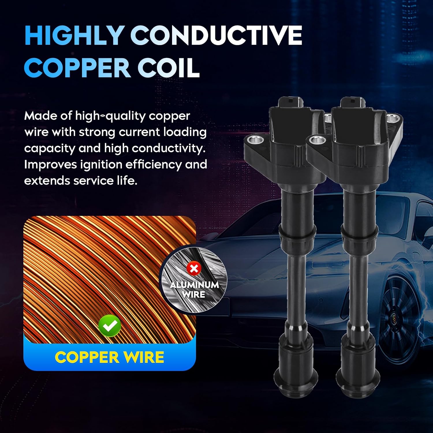 • 🚗 Aumento de Performance: O exterior das nossas bobinas de ignição é feito de resina epóxi e plástico PPT, prevenindo o derretimento devido ao superaquecimento do motor. O interior é composto por bobinas de cobre altamente condutivas, proporcionando uma ignição mais rápida.