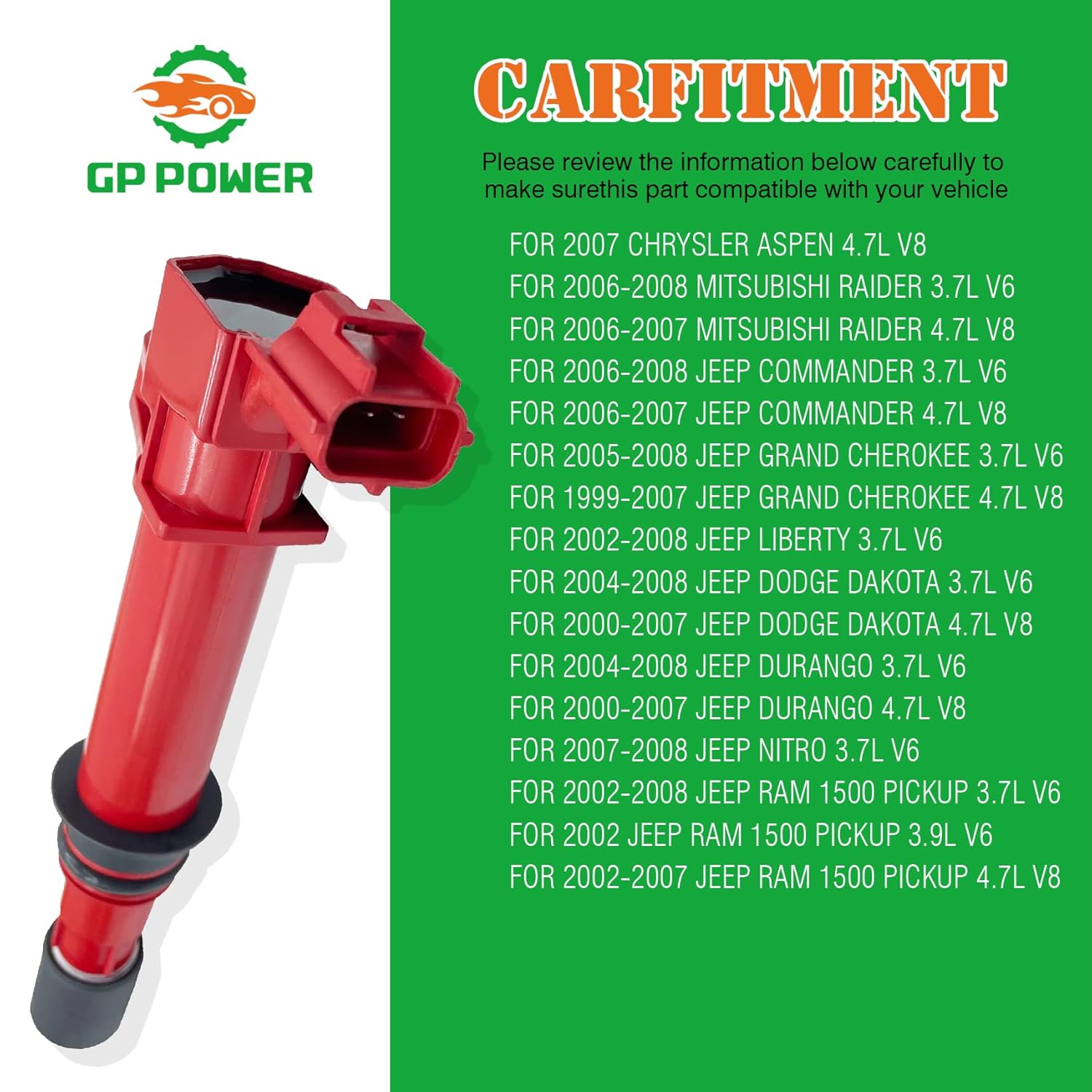 Descrição do Produto: Conjunto de Bobinas de Ignição GP POWER para Dodge Dakota, Durango, Ram 1500, Nitro, Jeep Grand Cherokee, Liberty, Commander e Mitsubishi Raider V8 4.7L e V6 3.7L – Substituição para UF270