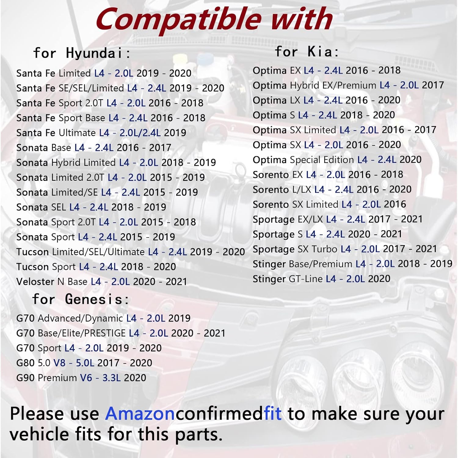 Substituição de Números de Peça: 273002GGA0, UF-764, GN10730, 5C2091, 9212303, C988, 178-8545. Essas bobinas de ignição são compatíveis com uma ampla gama de modelos, incluindo o Genesis G70 L4-2.0L (2019-2021), G80 V8-5.0L (2017-2020), G90 Ultimate V8-5.0L (2017-2020), além de diversos modelos da Hyundai como Santa Fe L4-2.0L/2.4L (2016-2020), Sonata Limited SE 2.0L/2.4L (2015-2019), Tucson 2.4L (2018-2020) e Kia Optima LX SX 2.0L/2.4L (2016-2020).