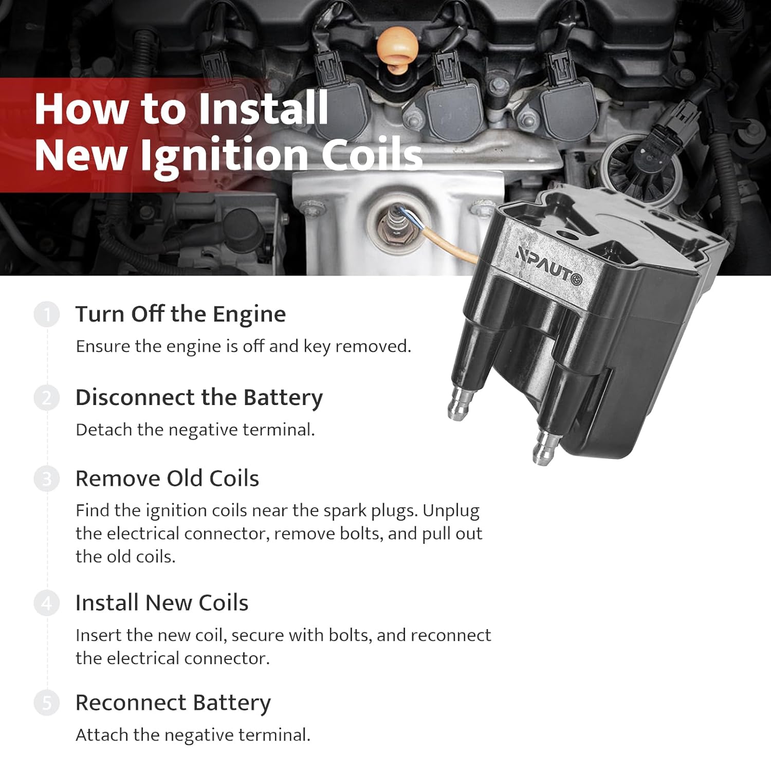 Para instalar as bobinas de ignição NPAUTO, siga os passos abaixo: