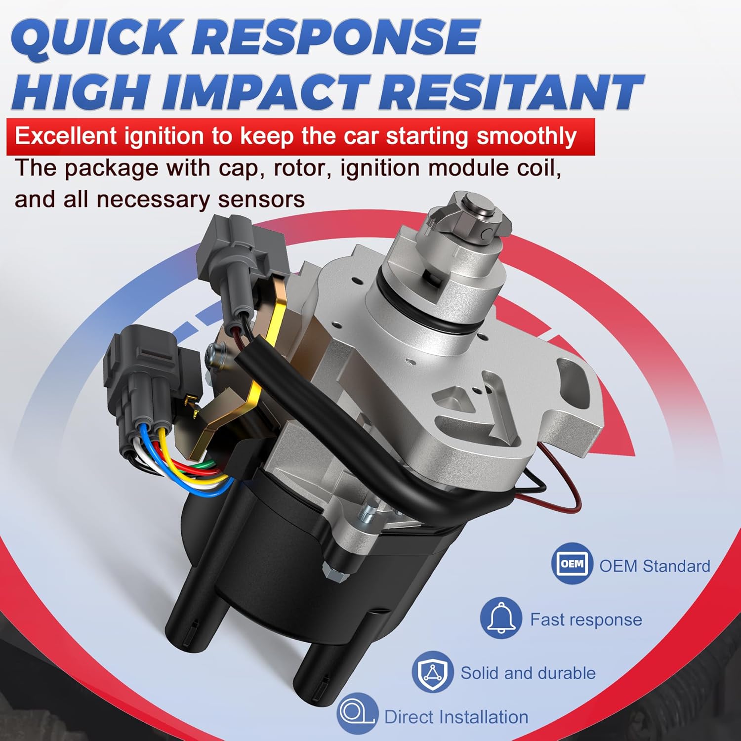 Este distribuidor de ignição vem equipado com um conector quadrado de 2+6 pinos, incluindo o distribuidor, capô, rotor e bobina. Sua construção anti-corrosão garante uma vida útil prolongada, mesmo em condições adversas.