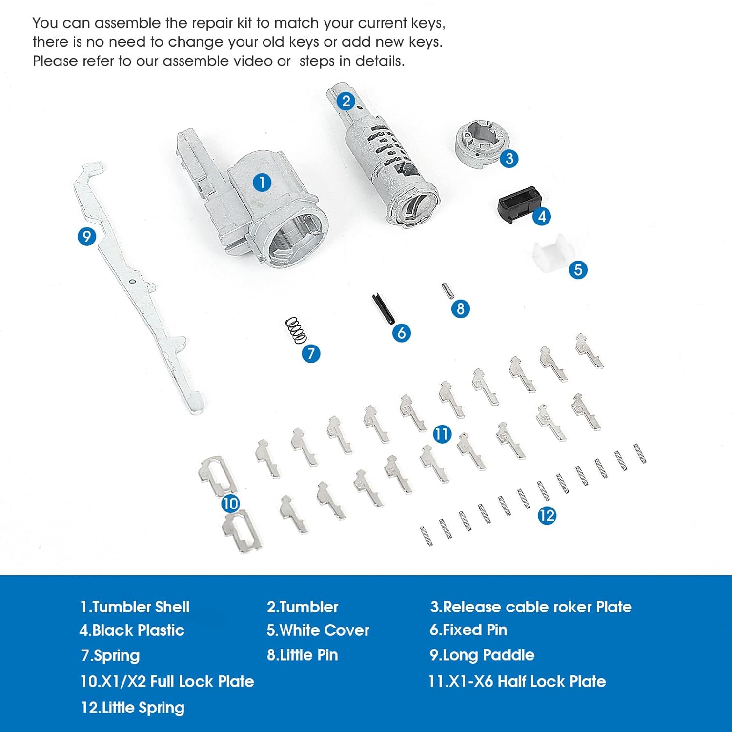 Você pode montar o kit de reparo para corresponder às suas chaves atuais, eliminando a necessidade de trocar suas chaves antigas. Para facilitar o processo, disponibilizamos um vídeo de montagem em nosso canal no YouTube.