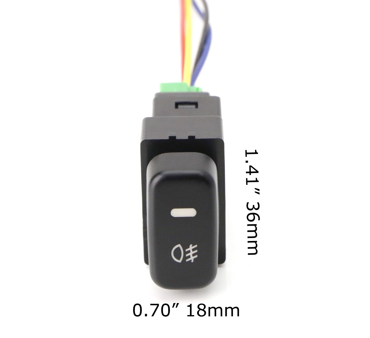 Com um design compacto, o interruptor possui um tamanho de painel frontal de 36mm x 18mm e vem com fios de conexão em pigtail de 4 vias, que podem ser utilizados ou não, dependendo da presença de um conector de fábrica no seu veículo. É importante que o cliente verifique as dimensões e a forma do painel antes da compra, pois a compatibilidade é garantida apenas para aberturas de painel idênticas em forma e tamanho. Qualquer discrepância pode exigir modificações para a instalação.