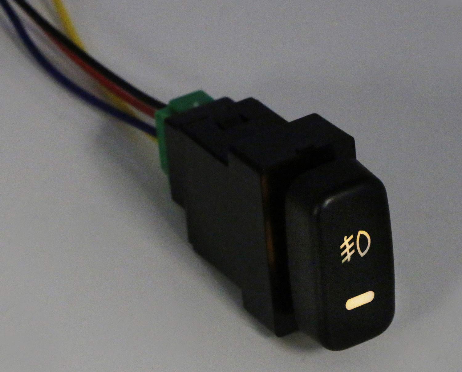 In the demo video, it shows the switch lit up when the blue wire receives power, but only the fog light symbol part. My blue wire makes the bottom bar shaped light turn on when it receives power. I could never get the fog light symbol to light up.