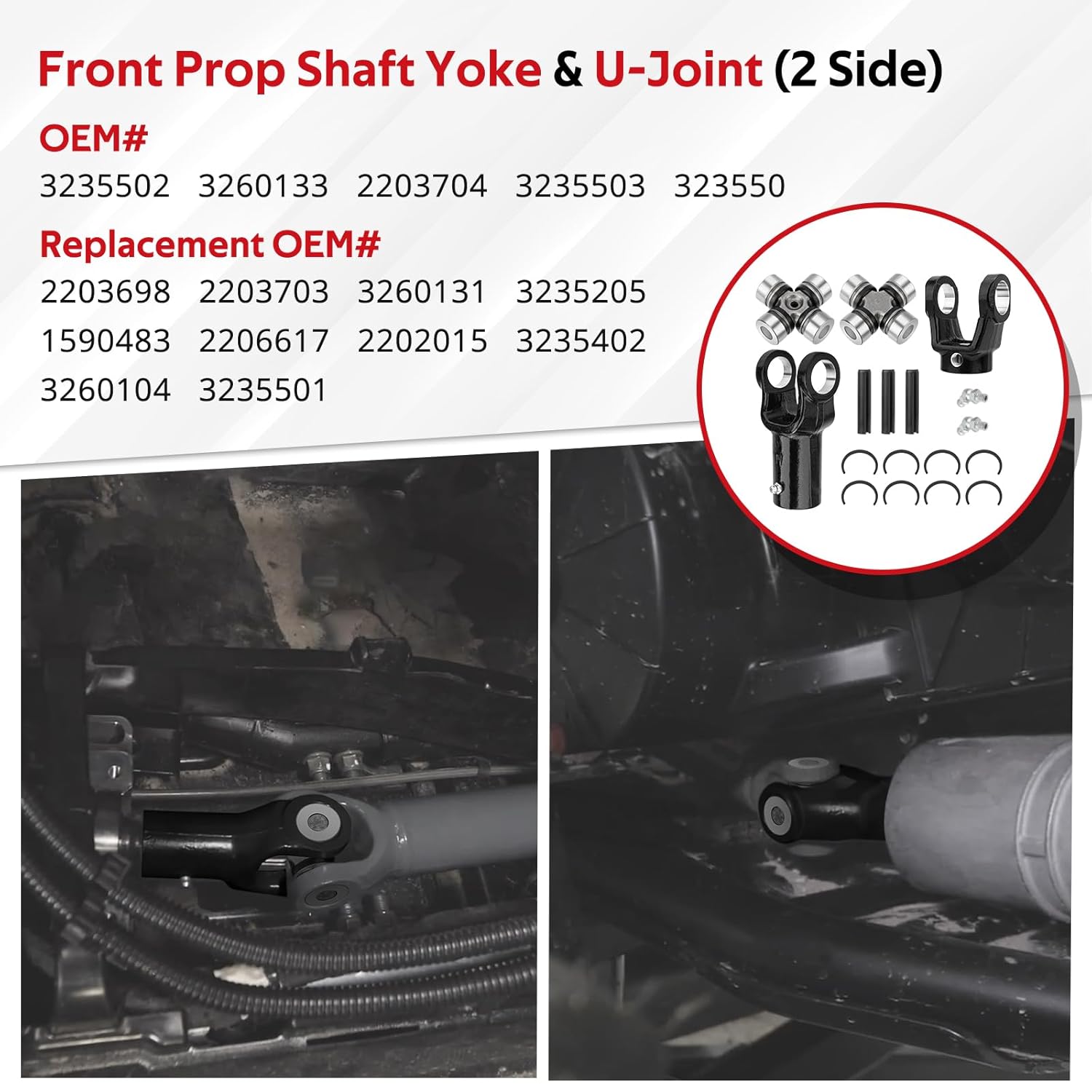 Os kits de Yoke e U-joint da JAVIK são fabricados com aço e ferro de alta qualidade, garantindo um desempenho superior e uma substituição perfeita para as peças originais. Cada componente é 100% testado, assegurando que você receba um produto confiável e durável. O JAVIK Front Prop Shaft Yoke é compatível com os números OEM 3235502, 3260133, 2203704, 3235503, 3235500 e os números de substituição 2203698, 2203703, 3260131, 3235205, 1590483, 2206617, 2202015, 3235402, 3260104, 3235501.
