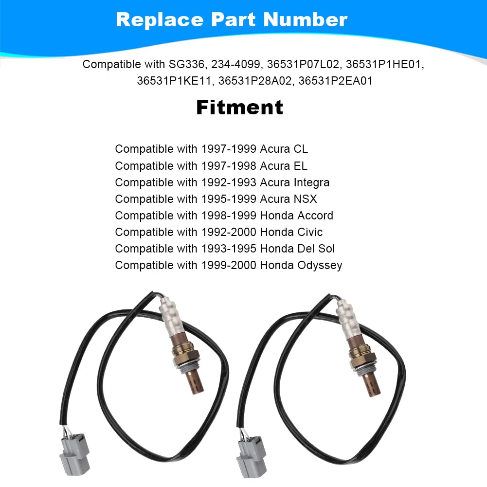 - Número OE Intercambiável: Compatível com SG336, 234-4099, 36531P07L02, 36531P1HE01, 36531P1KE11, 36531P28A02, 36531P2EA01. O pacote inclui 2 sensores de oxigênio.