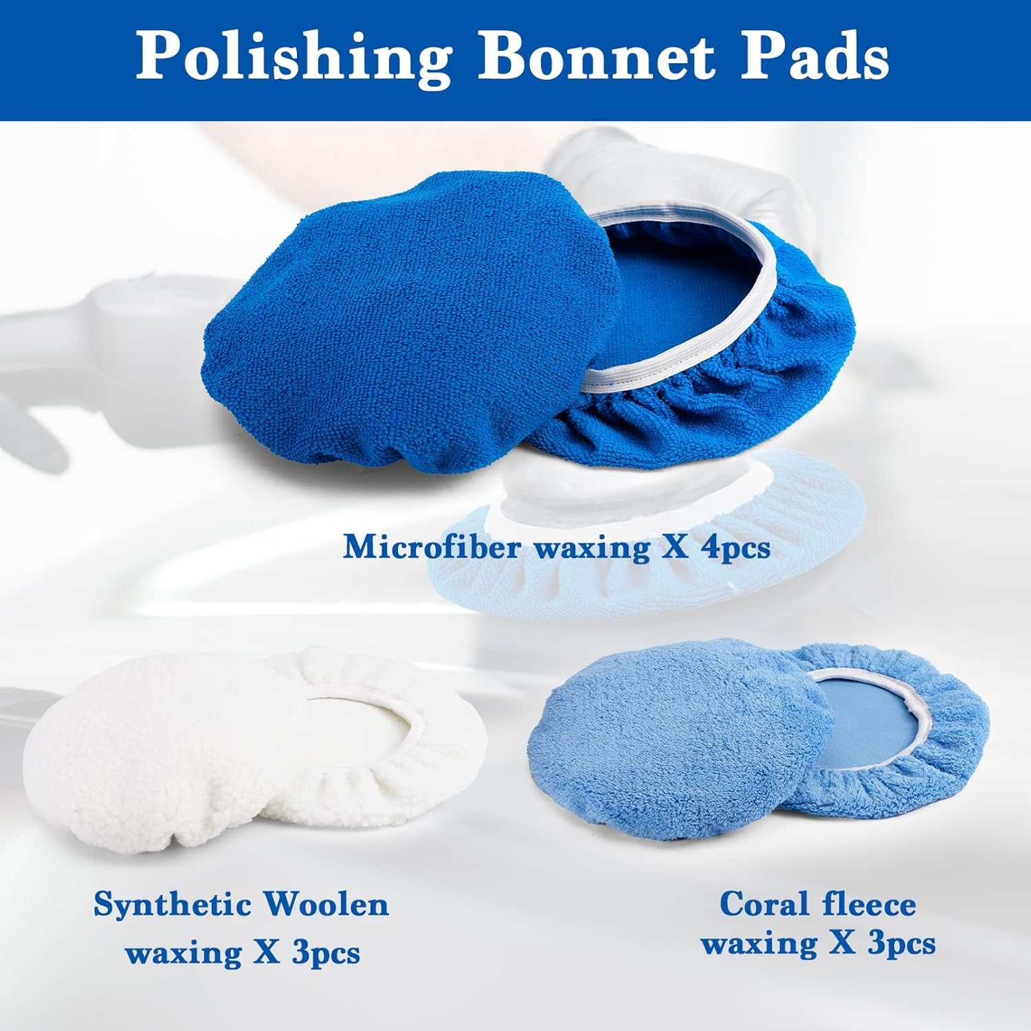 These waxing bonnets work fine for applying and removing wax on my car. The thicker bonnets which are good for applying and getting the wax good and worked into my car’s finish. These thicker material bonnets fit well on my buffer/polisher without any issues. The thinner material bonnets which serve as wax removal bonnets was a microfiber bonnet, when I stretched it onto my buffer/polisher the edging seam popped and snapped which the edging separated from the microfiber bonnet, this was not what I expected but I tried fitting other microfiber bonnets on and the same thing happened which was the edging seam tore and started to come apart from the microfiber. These microfiber bonnets were the major disappointment I had with this bonnet set. All in all if it weren’t for the poor quality of the microfiber bonnets these bonnets would have been a good buy but these bonnets were a disappointment to me.