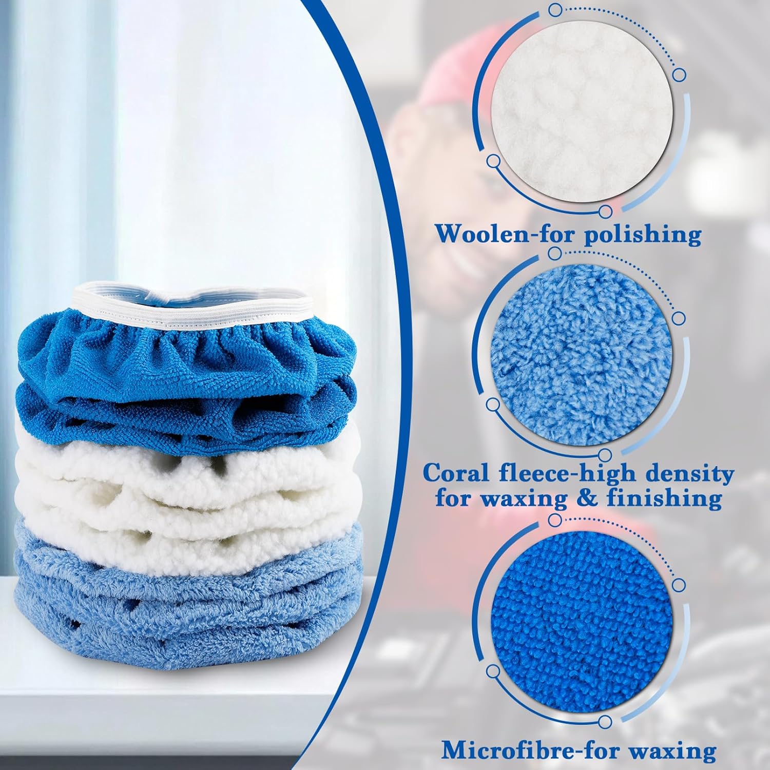 Conteúdo da Embalagem: Você receberá 10 peças de bonés de polimento de 9″ a 10″, incluindo 4 bonés de microfibra, 3 bonés de coral fleece e 3 bonés de lã. Este conjunto é projetado para realizar funções de enceramento, limpeza e polimento, garantindo que você tenha tudo o que precisa em um único pacote.