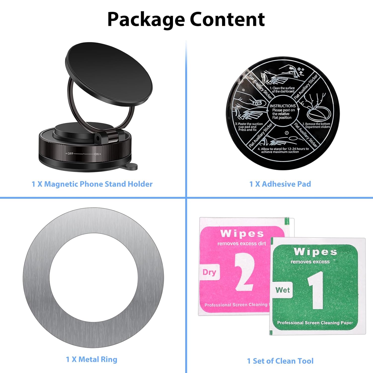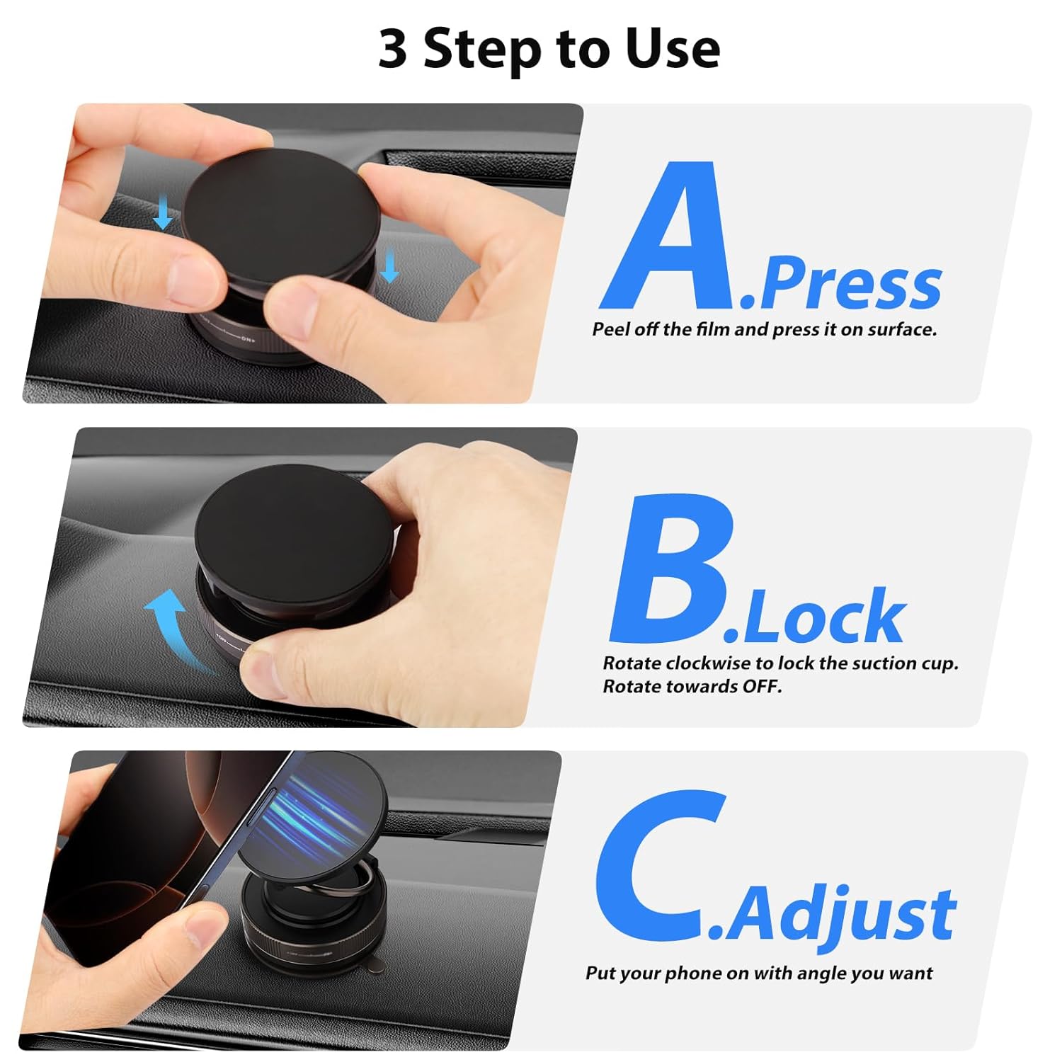 It also comes with a pad that was a double side tape for those with a dash that doesn’t have a smooth surface. Installation is super easy and all you do is just place the holder down and twist the outside base clockwise and it will pull the middle part of the suction up creating a strong vacuum. Great phone holder that is simple to use.