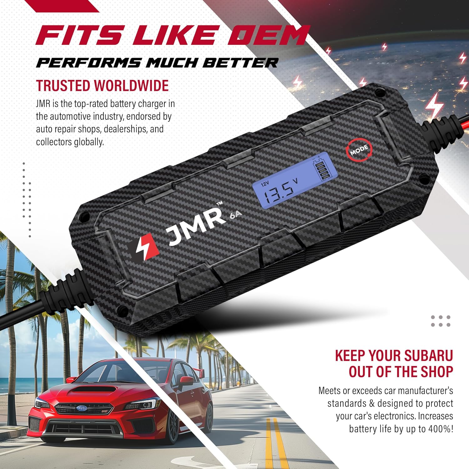 Além disso, o JMR protege a eletrônica do seu Subaru e pode aumentar a vida útil do veículo em até 400%. Ele atende ou supera os padrões dos fabricantes de automóveis, garantindo que a garantia do seu veículo não seja anulada. O desempenho do JMR é superior ao carregador de fábrica, permitindo carregar baterias saudáveis 40% mais rápido e garantindo partidas confiáveis do motor. Este produto é amplamente utilizado por concessionárias autorizadas, mecânicos e mais de 200.000 colecionadores de automóveis em todo o mundo.