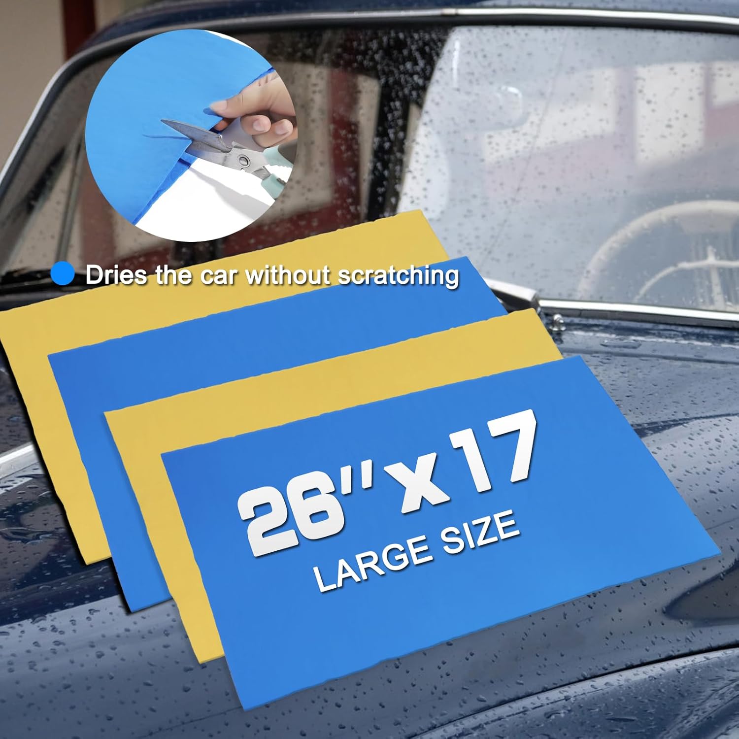 Great for drying cars quickly without leaving streaks or scratches. The synthetic material is super absorbent and reusable, making it a must-have for car cleaning. Works well on windows and interiors too!