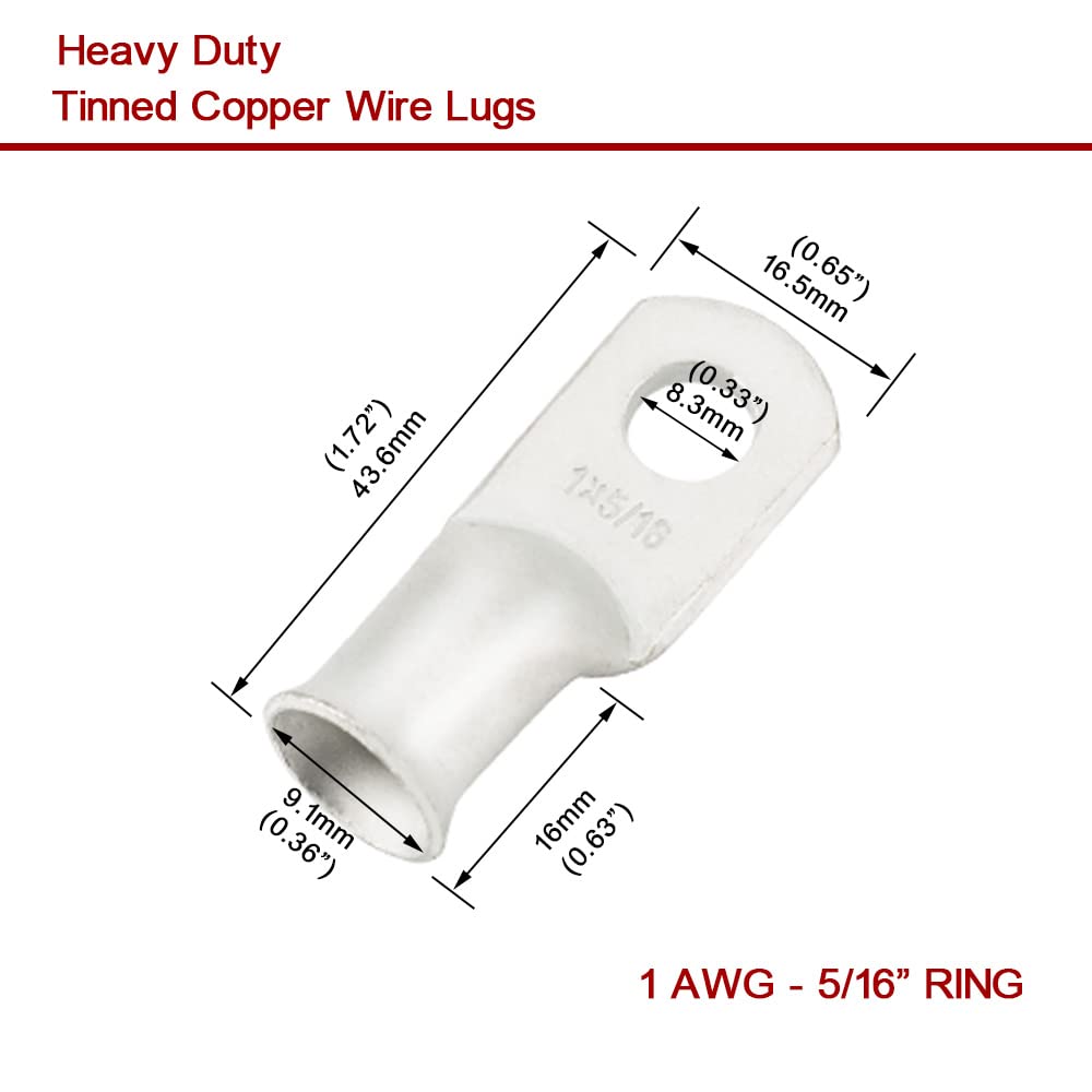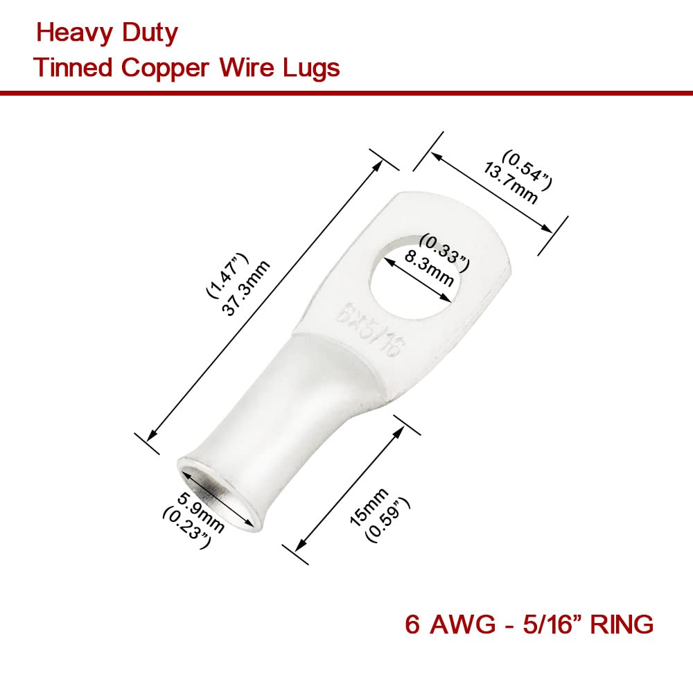 Conteúdo da Embalagem: 10 PCS. de terminais de cabo de bateria de cobre estanhado 6 AWG (AWG) com furo de 5/16″.