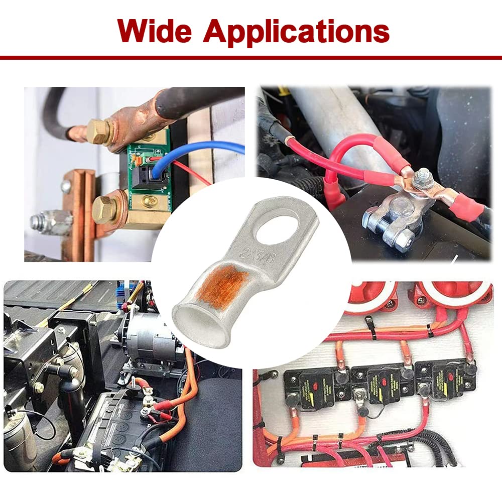 Aplicações Amplas: Os terminais de anel de cobre podem ser utilizados em automóveis, motocicletas, caixas de distribuição, carrinhos de golfe, painéis solares, aplicações marinhas, residenciais, fiações elétricas DIY e outras aplicações externas.