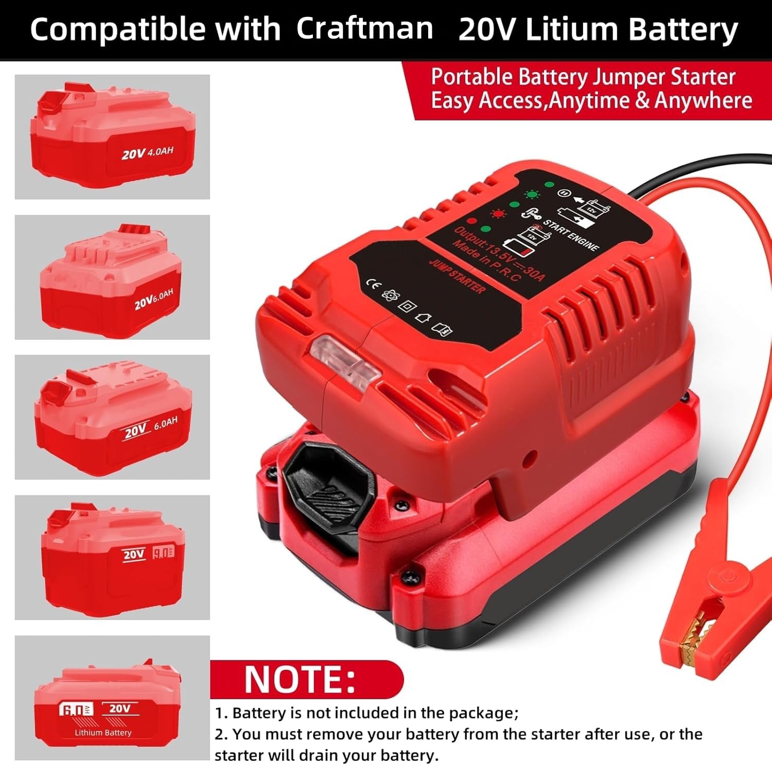 – Bateria de Ferramenta de Lítio para Partida: Converta a bateria da sua ferramenta elétrica em uma fonte de energia para dar partida em carros.