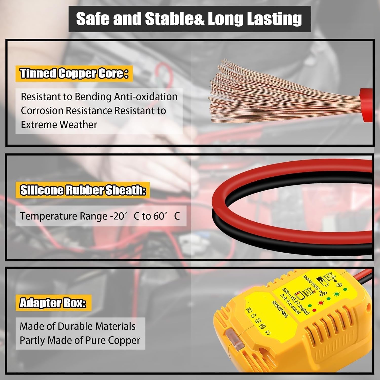 22 avaliações para Adaptador Jump Starter 12V para Carro com Cabos Jumper 11AWG – Converta Bateria de Ferramenta Elétrica para Dar Partida em Carros (Somente Adaptador com Cabos Booster, Sem Bateria) – Compatível com DeWalt 20V e 60V