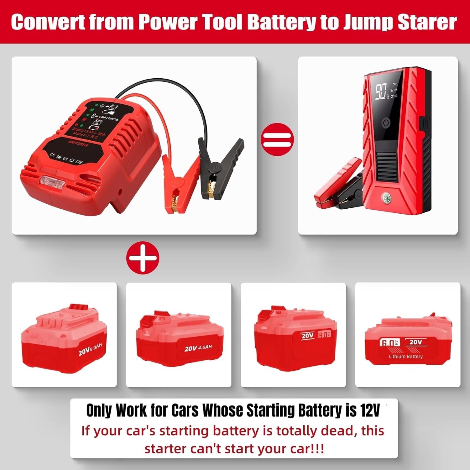 – Bateria de Ferramenta de Lítio para Partida: Converta a bateria da sua ferramenta elétrica em uma fonte de energia para dar partida em carros.