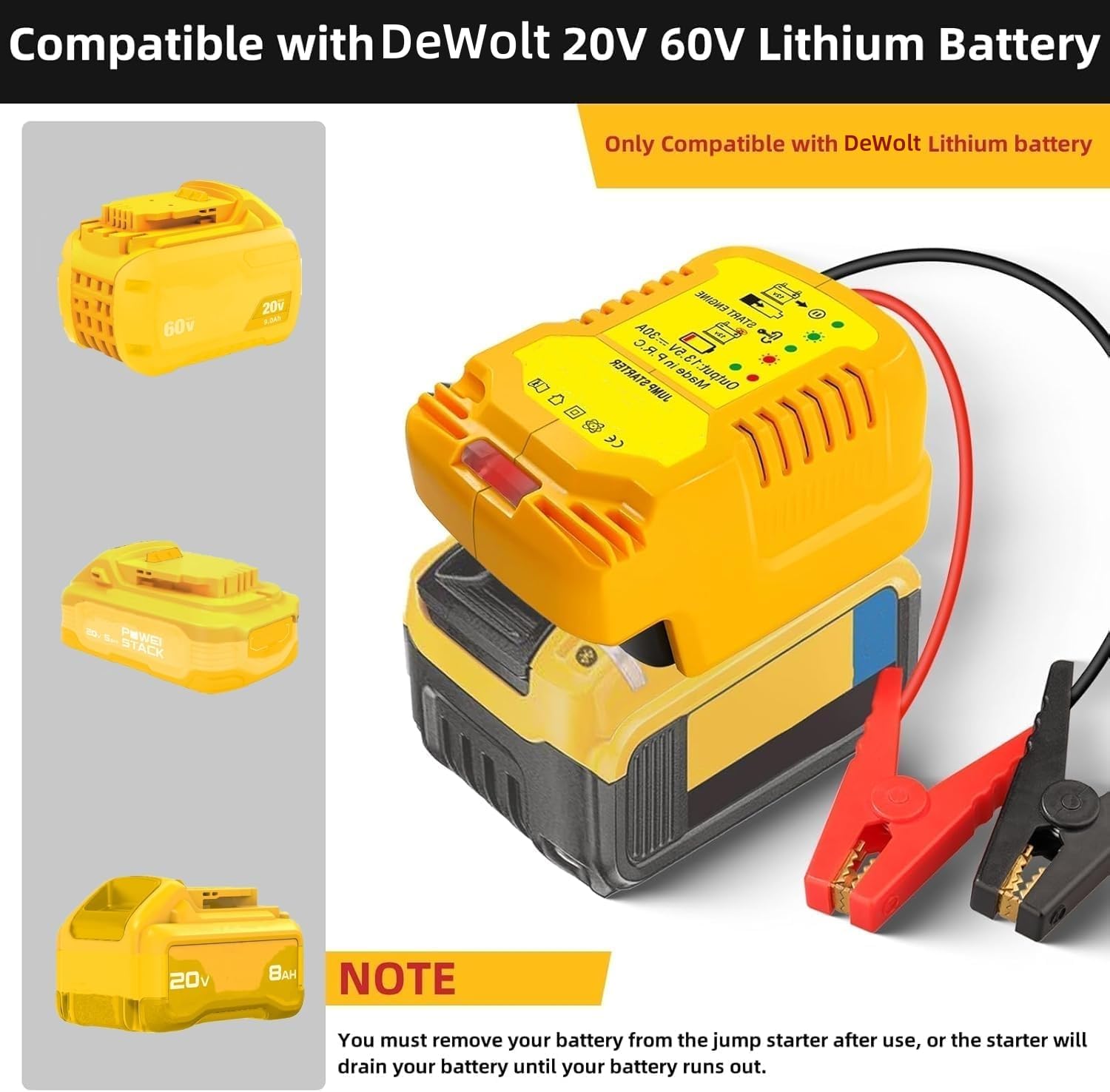 O Jump for Starter é a solução ideal para quem precisa de um impulso rápido e eficiente para veículos com motor de até 3.5L. Este adaptador inovador permite que você converta a bateria de ferramentas elétricas, como as da DeWalt 20V e 60V, em uma fonte de energia para dar partida em carros com bateria de 12V. Com cabos jumper de 11AWG, este produto é projetado para oferecer uma conexão robusta e segura, garantindo que você possa iniciar seu veículo em situações de emergência.