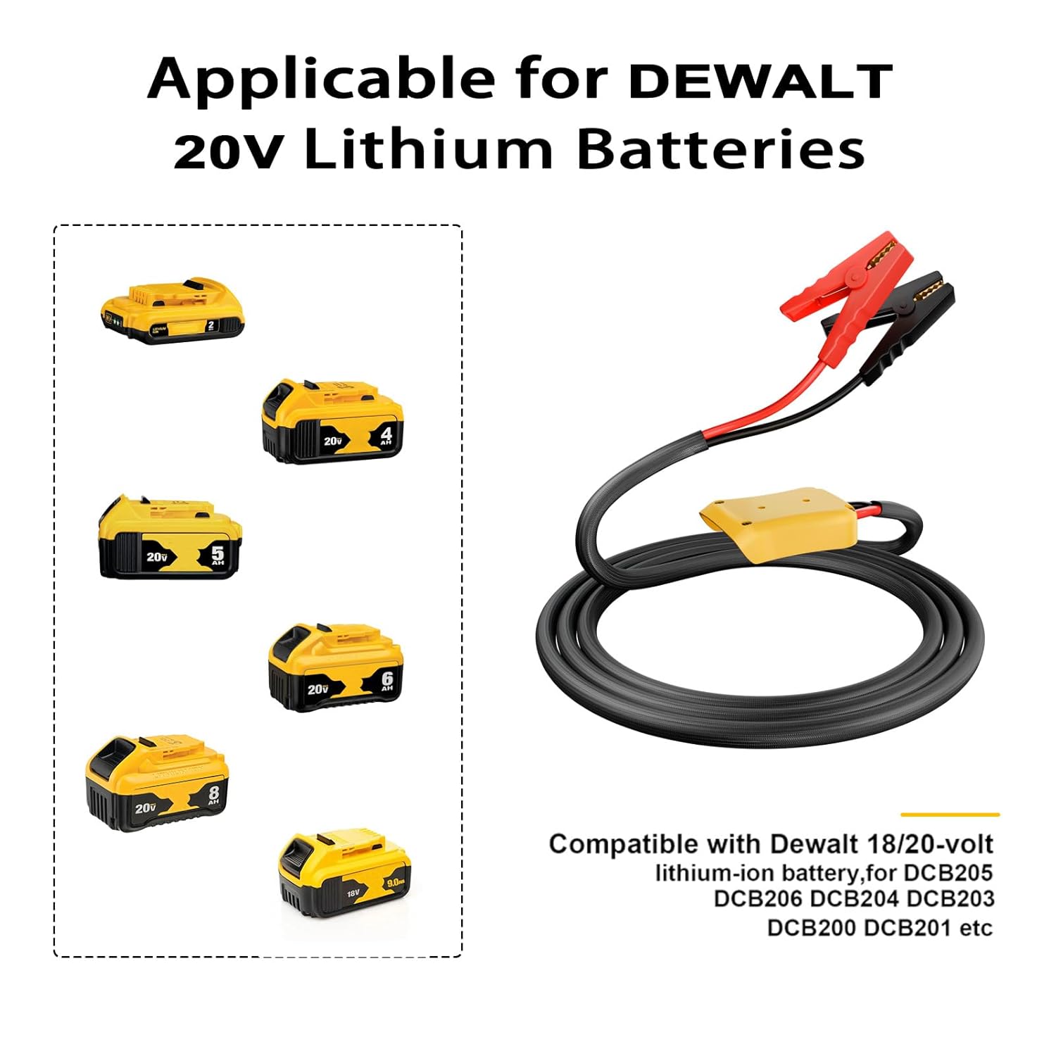 – Novo Starter de Partida Atualizado: Os cabos de partida IIXWUQ são projetados para uma compatibilidade perfeita com as baterias Dewalt 20V. A utilização é simples: alinhe o adaptador de energia na ranhura, pressione o conversor e certifique-se de que está travado na bateria (bateria não incluída).