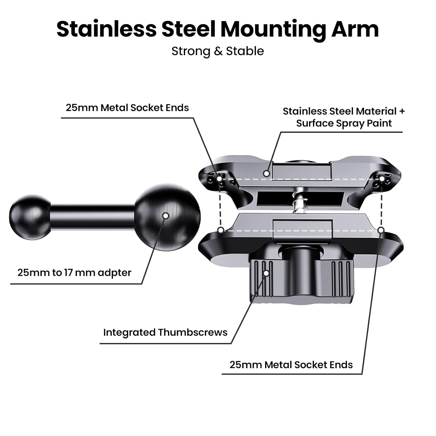 – Ângulo de Visão Perfeito: O braço do suporte possui uma cabeça esférica mini de 360°, permitindo ajustes em qualquer ângulo desejado.