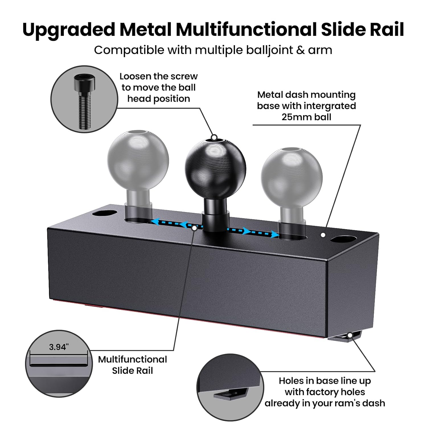 – Base Deslizante Multifuncional em Metal: Fabricado em liga de alumínio, o suporte oferece robustez e durabilidade, com uma instalação que pode ser realizada rapidamente.