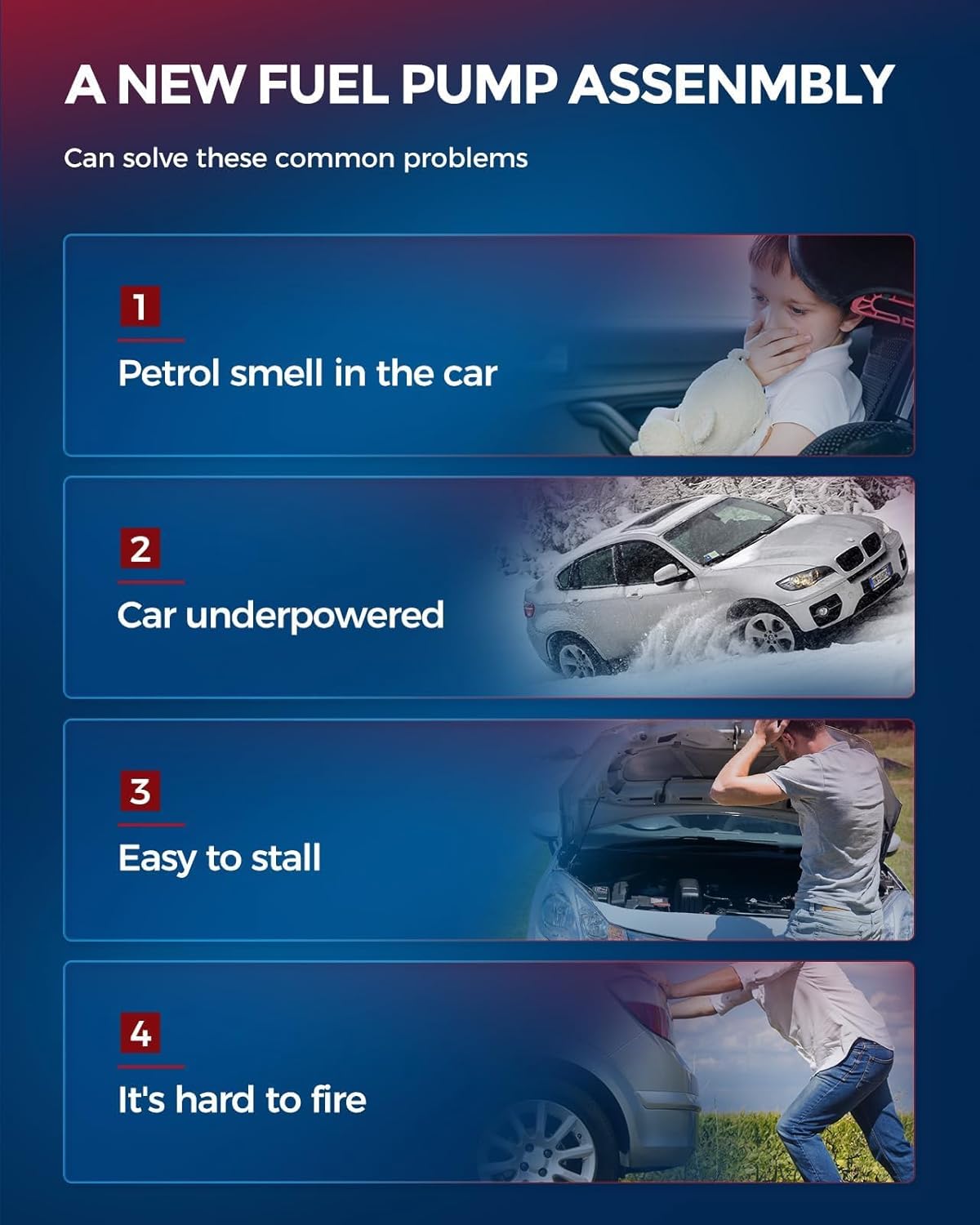 - Materiais Superiores: As partes plásticas são fabricadas com matérias-primas POM de alto desempenho importadas, utilizando a estrutura de bomba de combustível mais madura, resistente ao etanol e com maior eficiência. O elemento filtrante do conjunto da bomba é geralmente feito de tecido não tecido e nylon, filtrando impurezas e umidade do óleo, melhorando a eficiência de trabalho do veículo.