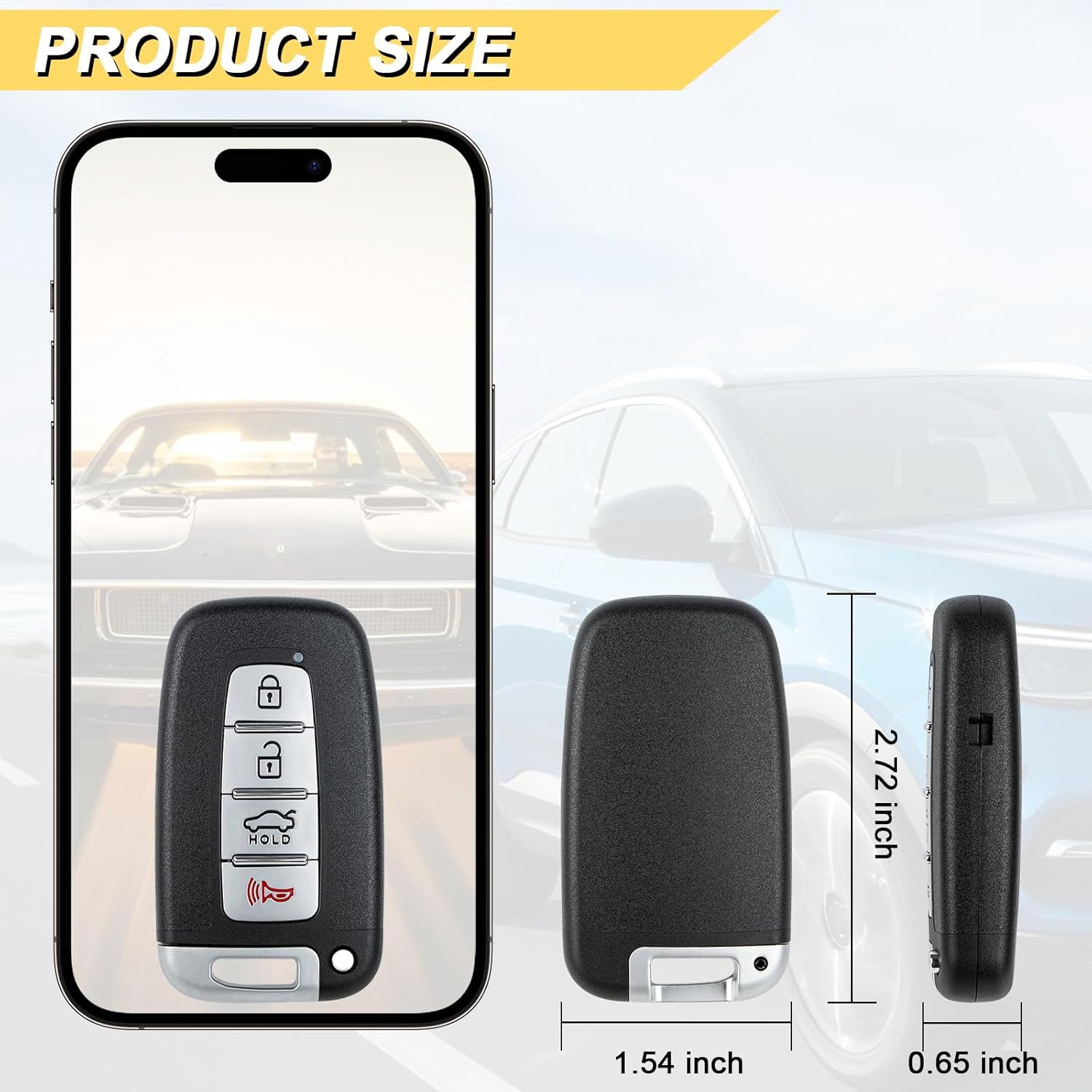 O Key Fob Replacement para veículos Hyundai e Kia é a solução ideal para quem precisa substituir a chave remota de modelos como o Hyundai Azera (2011-2015), Sonata (2011-2015), Equus (2012-2014), Elantra Sedan (2012-2013), Genesis Sedan (2009-2013), Kia Optima (2009-2013), Borrego (2010-2012), Forte (2011-2013), Sorento (2011-2013) e Rio (2011-2014). Este controle remoto é projetado para oferecer a mesma funcionalidade que a chave original, garantindo segurança e praticidade no dia a dia.