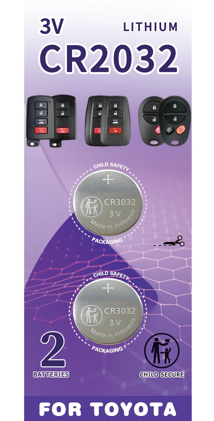 – Baterias Originais OEM CR2032 3V: Substituição de alta qualidade para chaves remotas Toyota.
