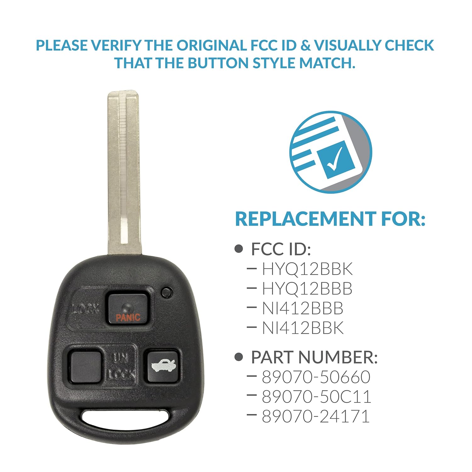 Compatibilidade e Qualidade: Este chaveiro remoto é compatível com o FCC ID: HYQ12BBK e números de peça: 89070-50660. Cada substituição de chave remota vem com baterias já instaladas e é pré-testada para garantir qualidade e funcionalidade superior. Verifique a ferramenta de compatibilidade do veículo para garantir que este produto se encaixa perfeitamente no seu carro.