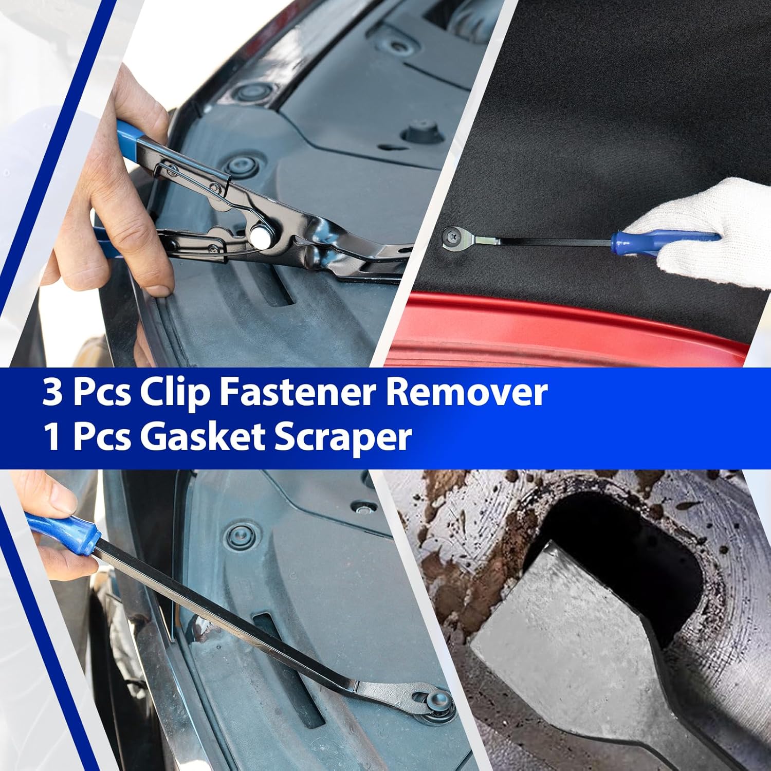 Os 3 Pcs de alicates de clipe são uma adição valiosa ao kit, com um alicate de 9,5 polegadas e duas ferramentas de remoção de fixadores. Feitas de material de fibra de nylon resistente a impactos, as ferramentas de remoção de acabamento automotivo garantem que seu carro não sofra arranhões durante o uso.